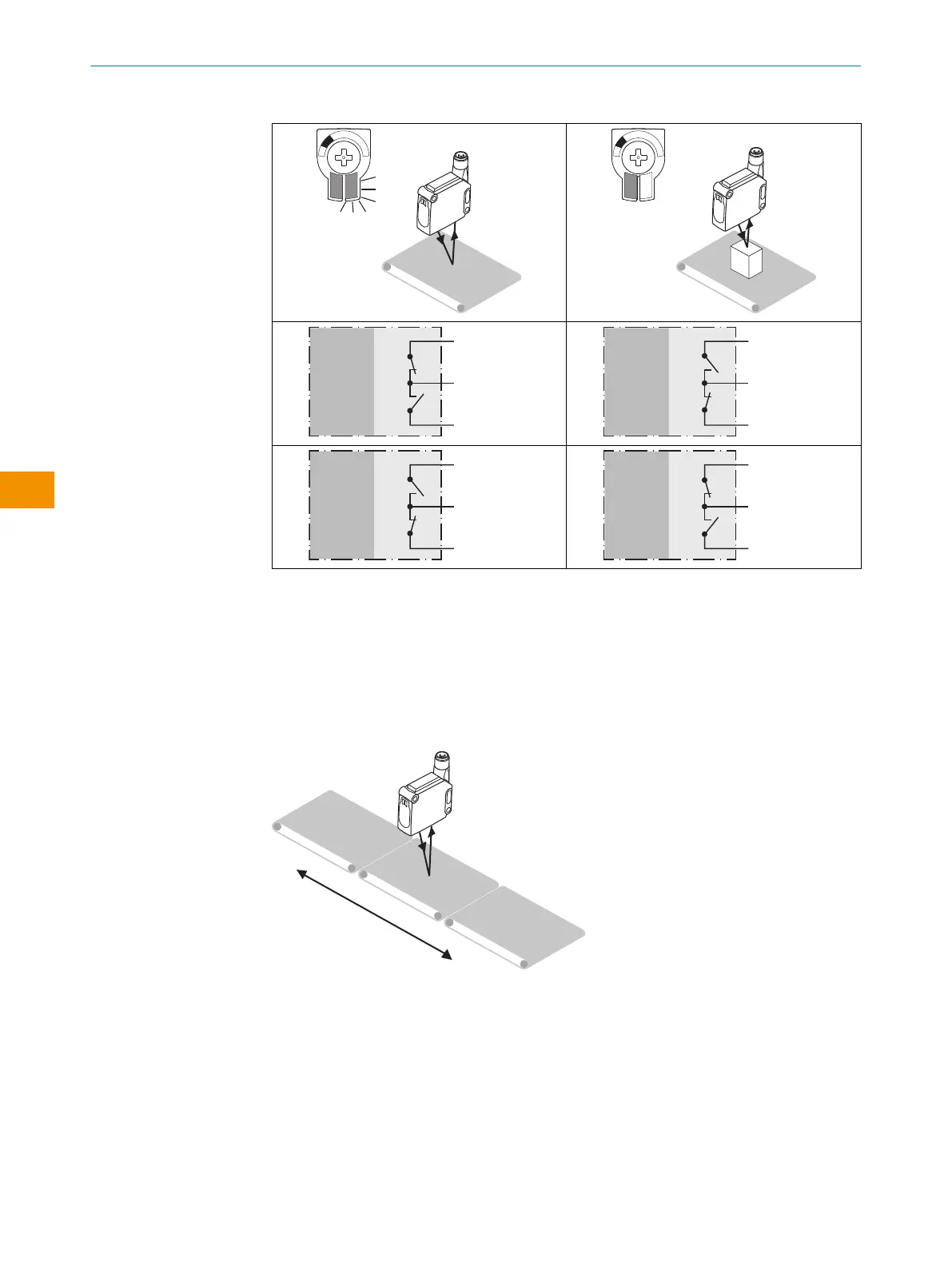 grad und Lage möglichst gleich bleiben. Der maximale Abstand (x) zwischen Lichttaster