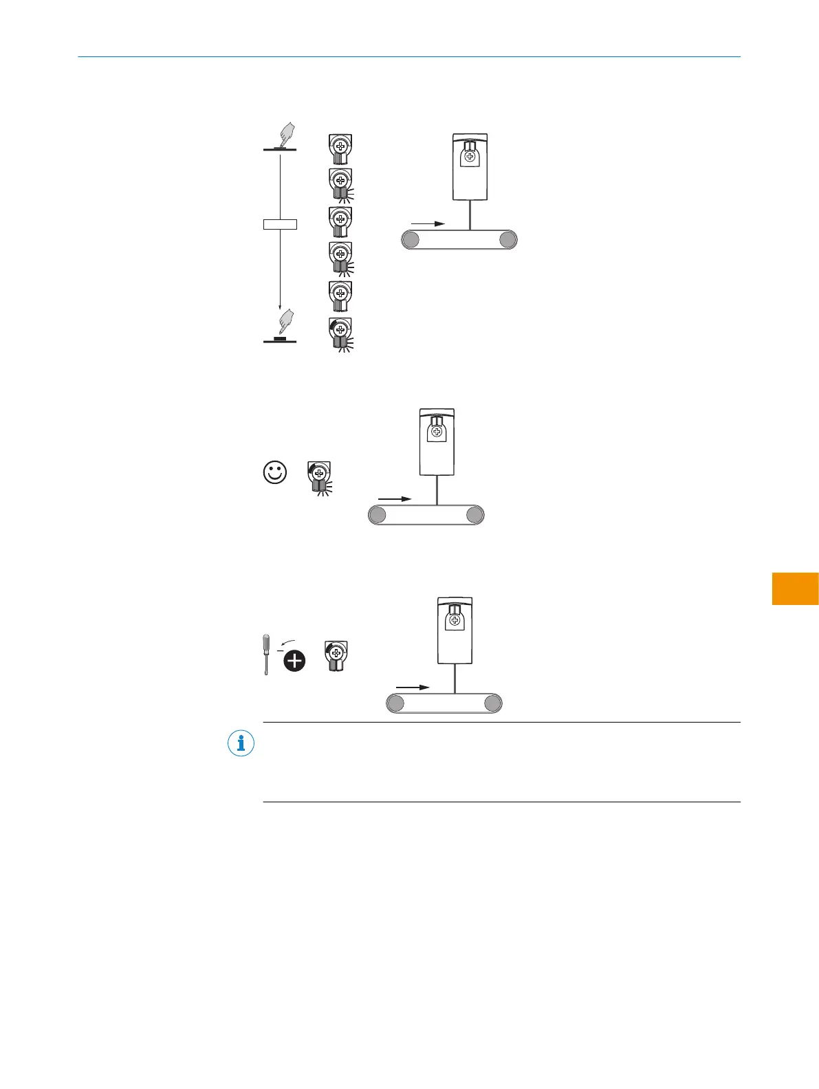 1. センサを背景に合わせて方向調整し、ティーチインボタンを黄色の LED が点