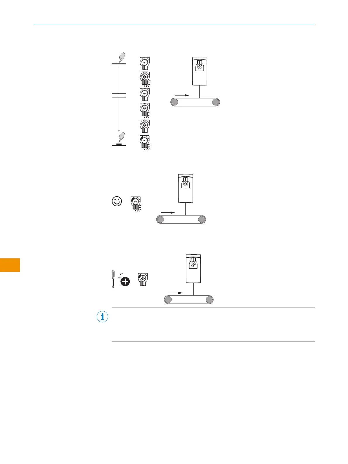 1. Ustawić czujnik na tło inacisnąć przycisk Teach-in (ok. 1do 3sekund), aż zacznie