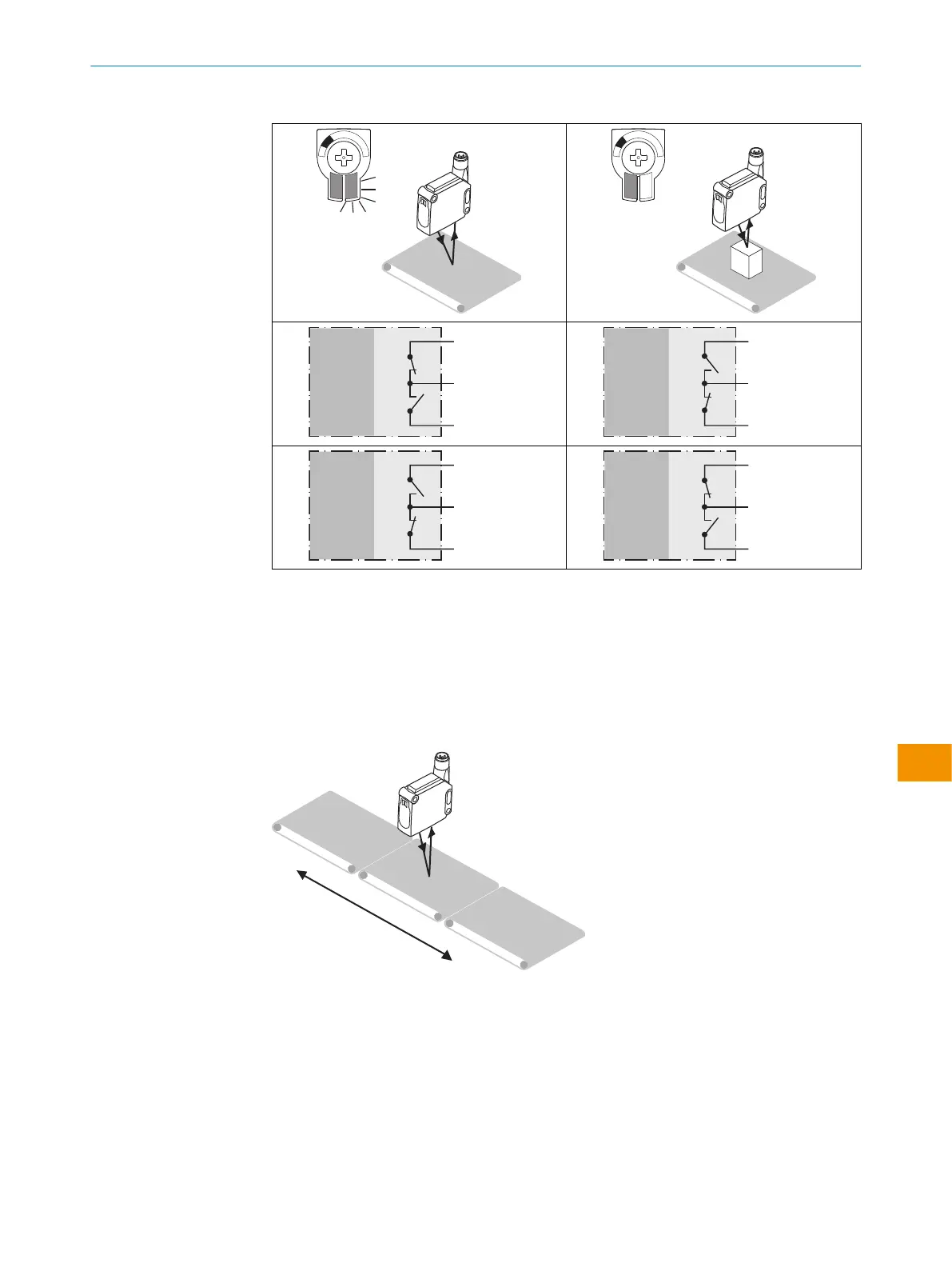 plano. O sensor fotoelétrico necessita de um fundo como referência. De preferência,