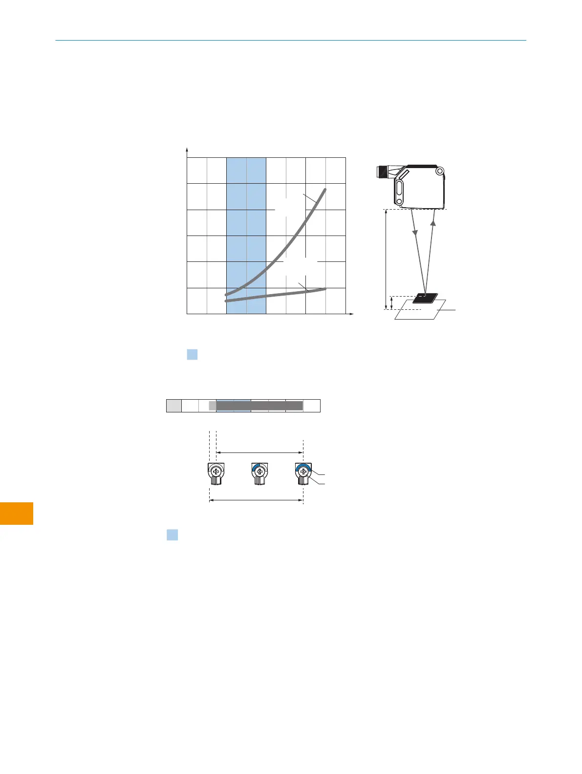检查使用条件:使用相应图表 (参见 插图 8, 第 218 页 ) 调整传感器与背景之间的