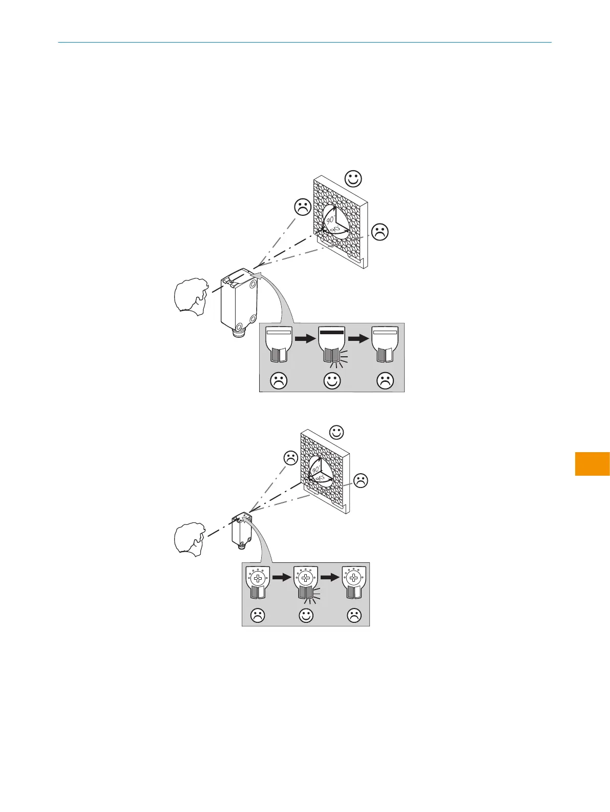 Ustawić czujnik na odpowiedni odbłyśnik. Wybrać taką pozycję, aby czerwona wiązka