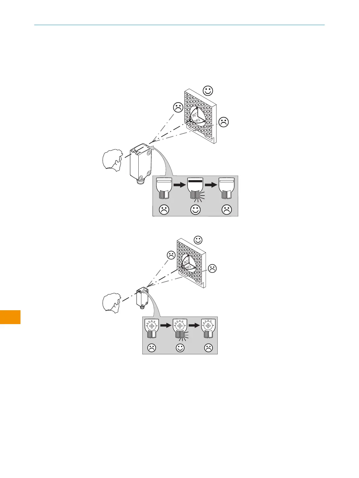 感器发出的光源应无遮挡地到达反光板。光路中不得出现任何物体 [参见 插图 3]。
