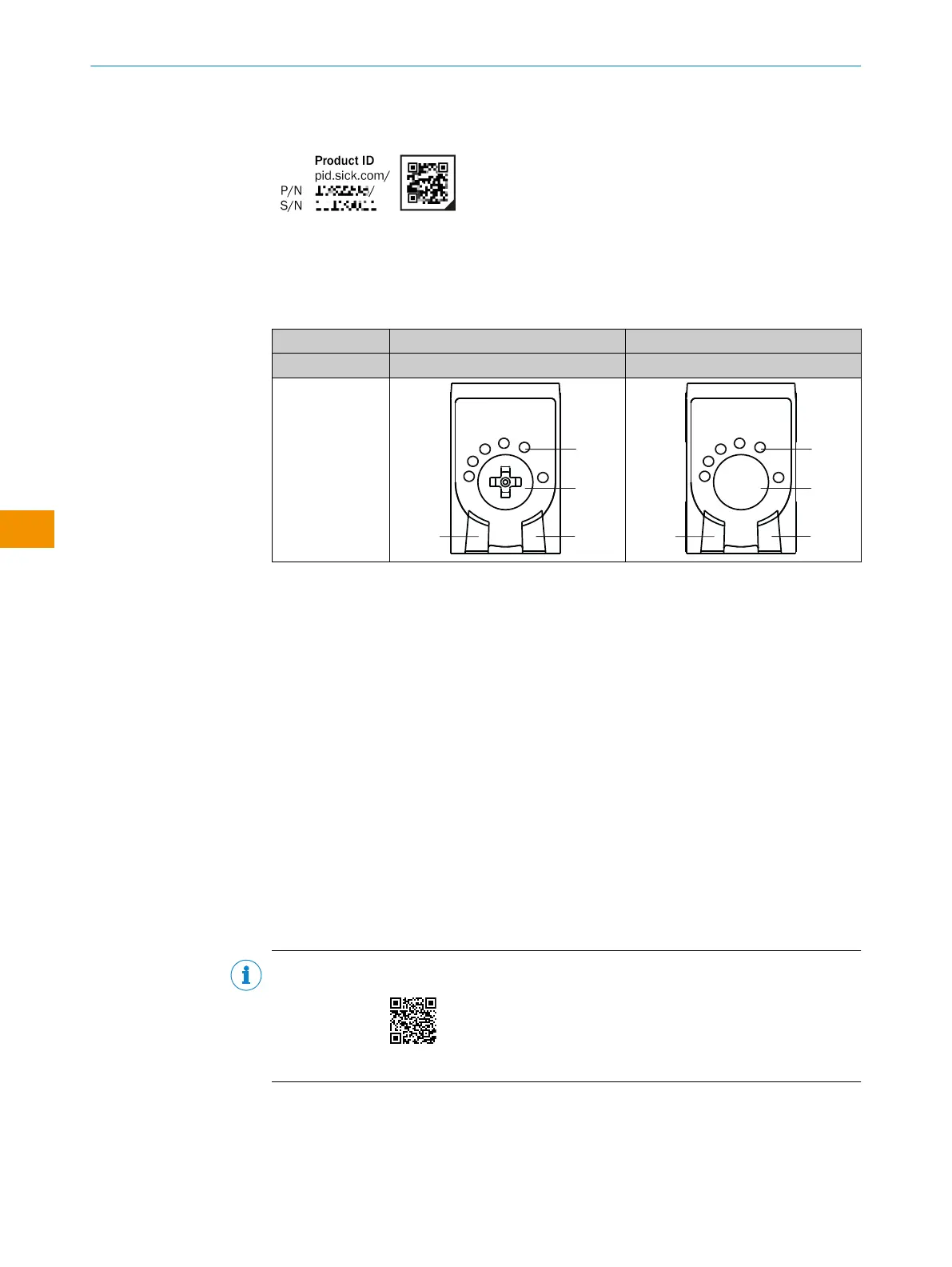The SICK product ID is displayed as text and QR code on the type label and/or on the