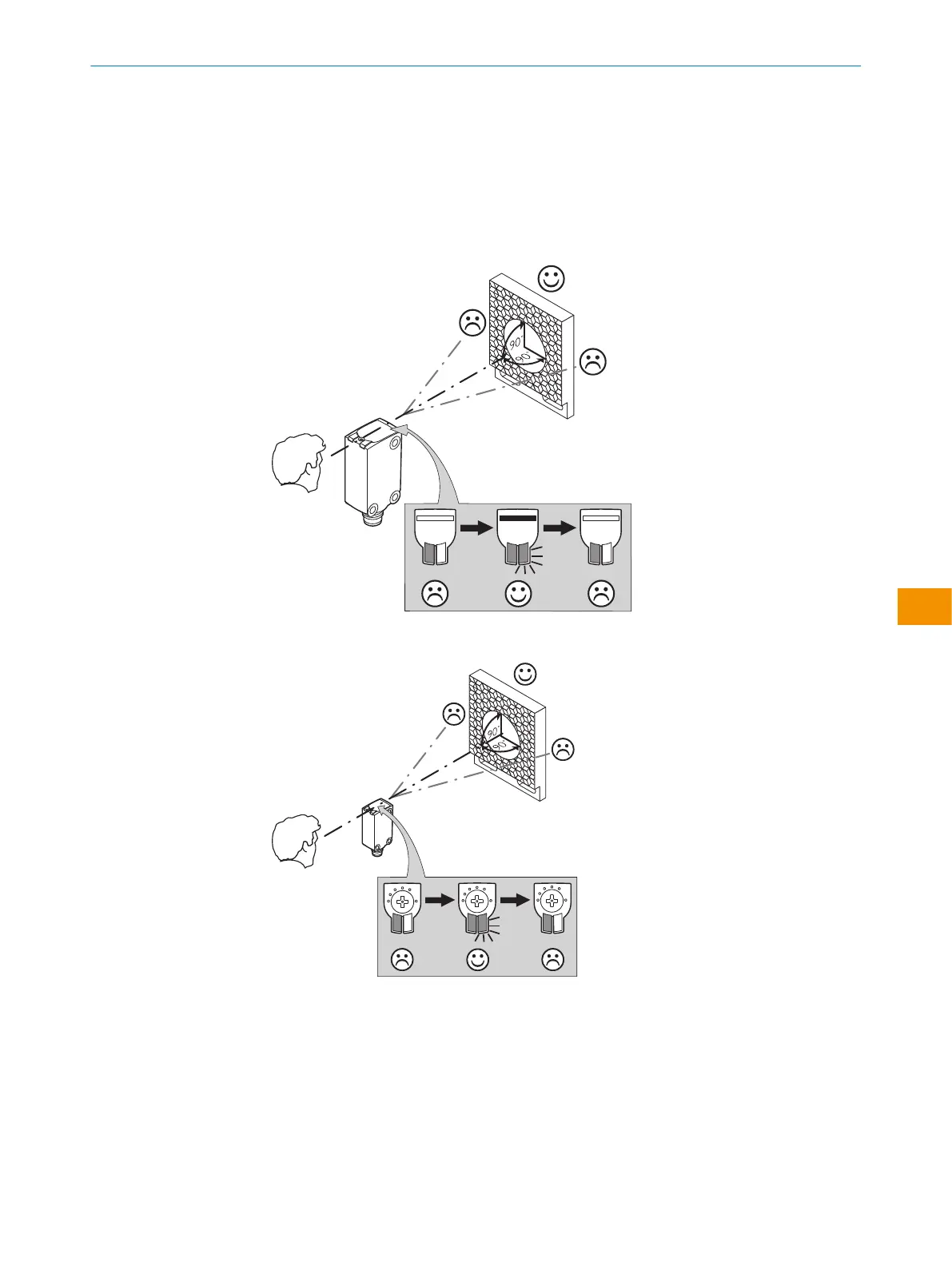 Aligner le capteur sur un réflecteur adapté. Choisir la position de sorte que le faisceau