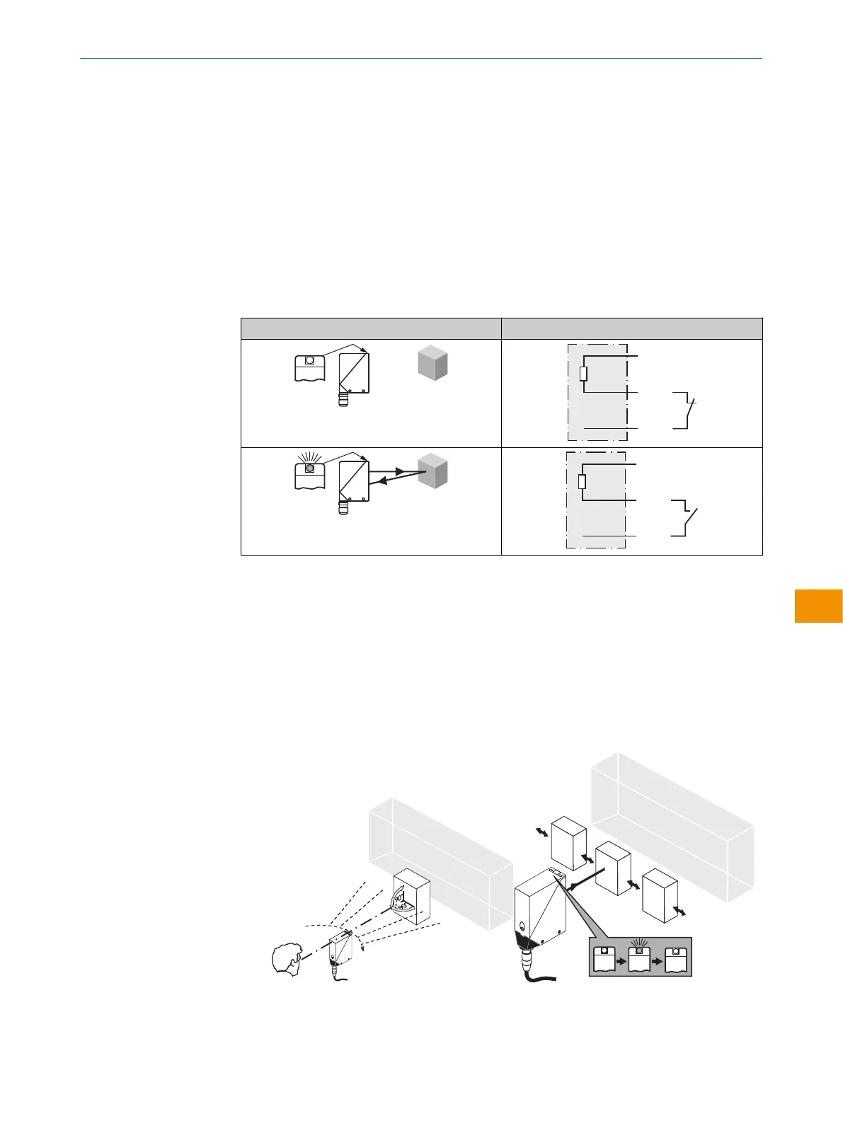 対象物が検出された場合、テスト入力を起動します (配線図 [参照 "WT34-Bxxx,