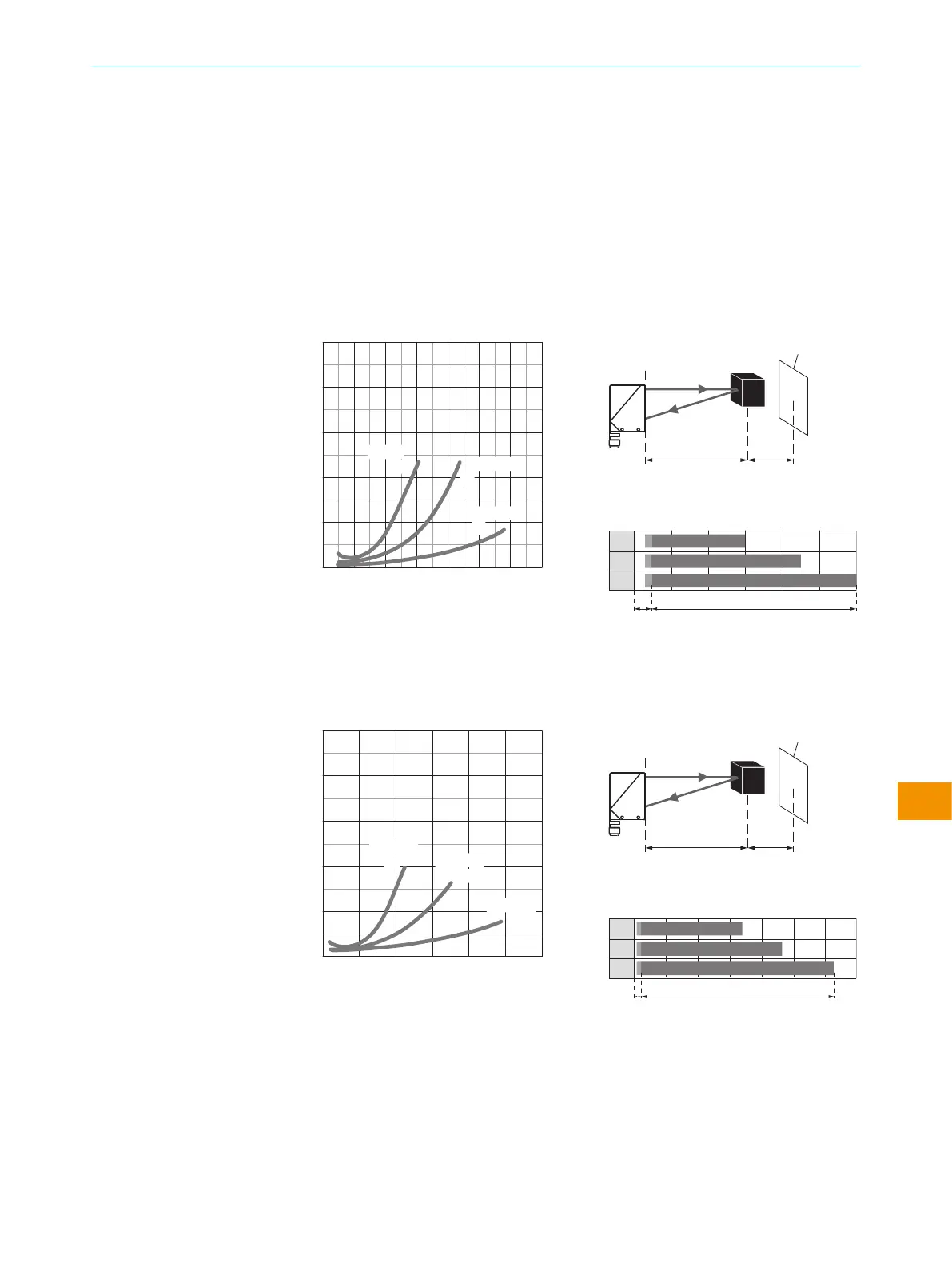 (y) между настроенным расстоянием срабатывания (x) и фоном.