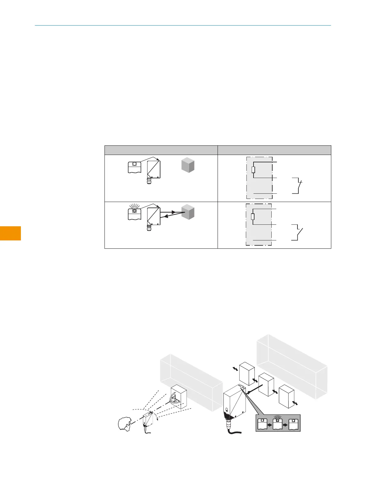 WT34-Xx1x, -Xx2x: aligner le capteur sur l’objet. Choisir la position de sorte que le faisceau