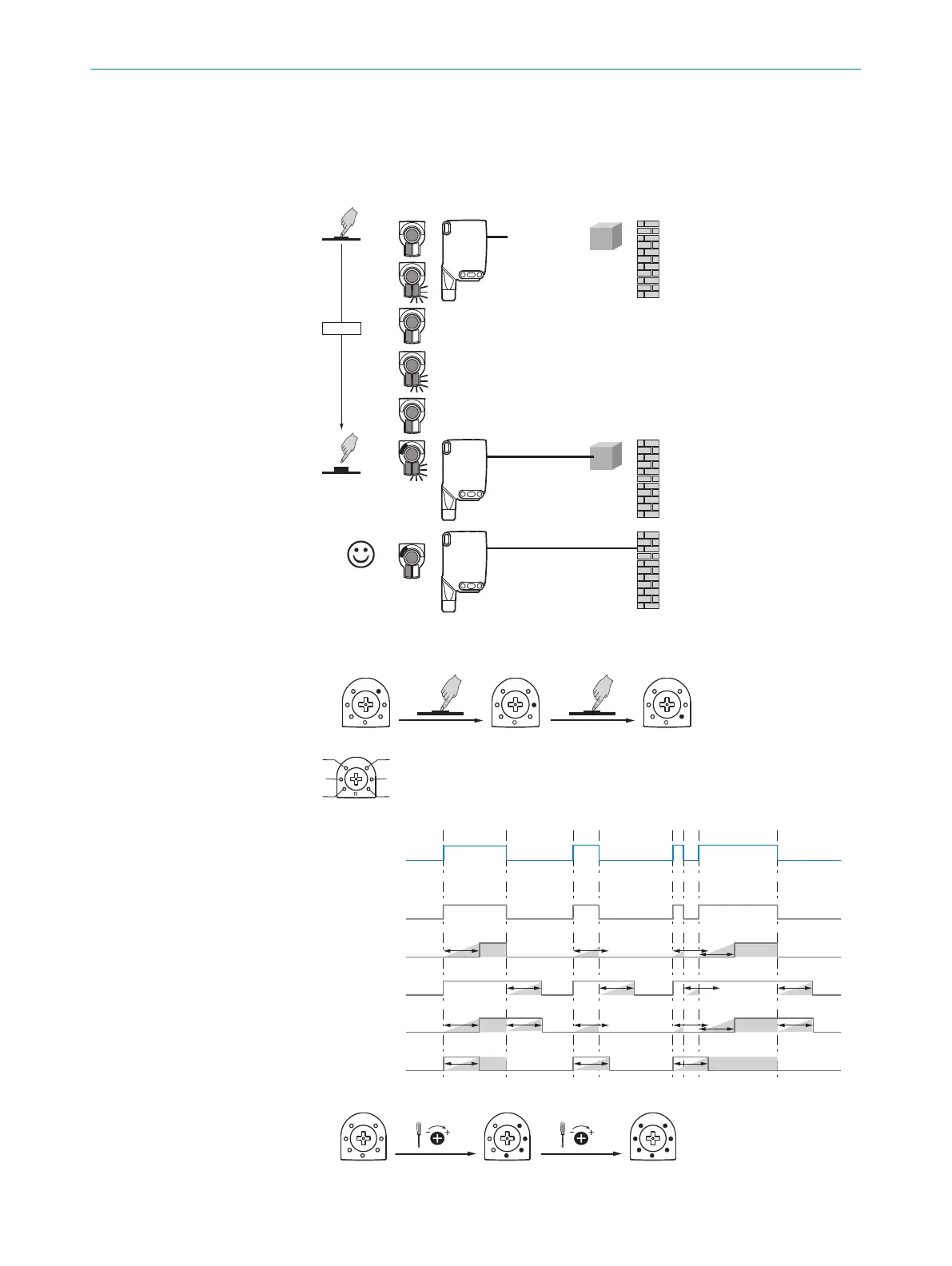 Figure 9: WTB26 x-xxxxxx3 xAxx, adjusting the sensing range with teach-in button