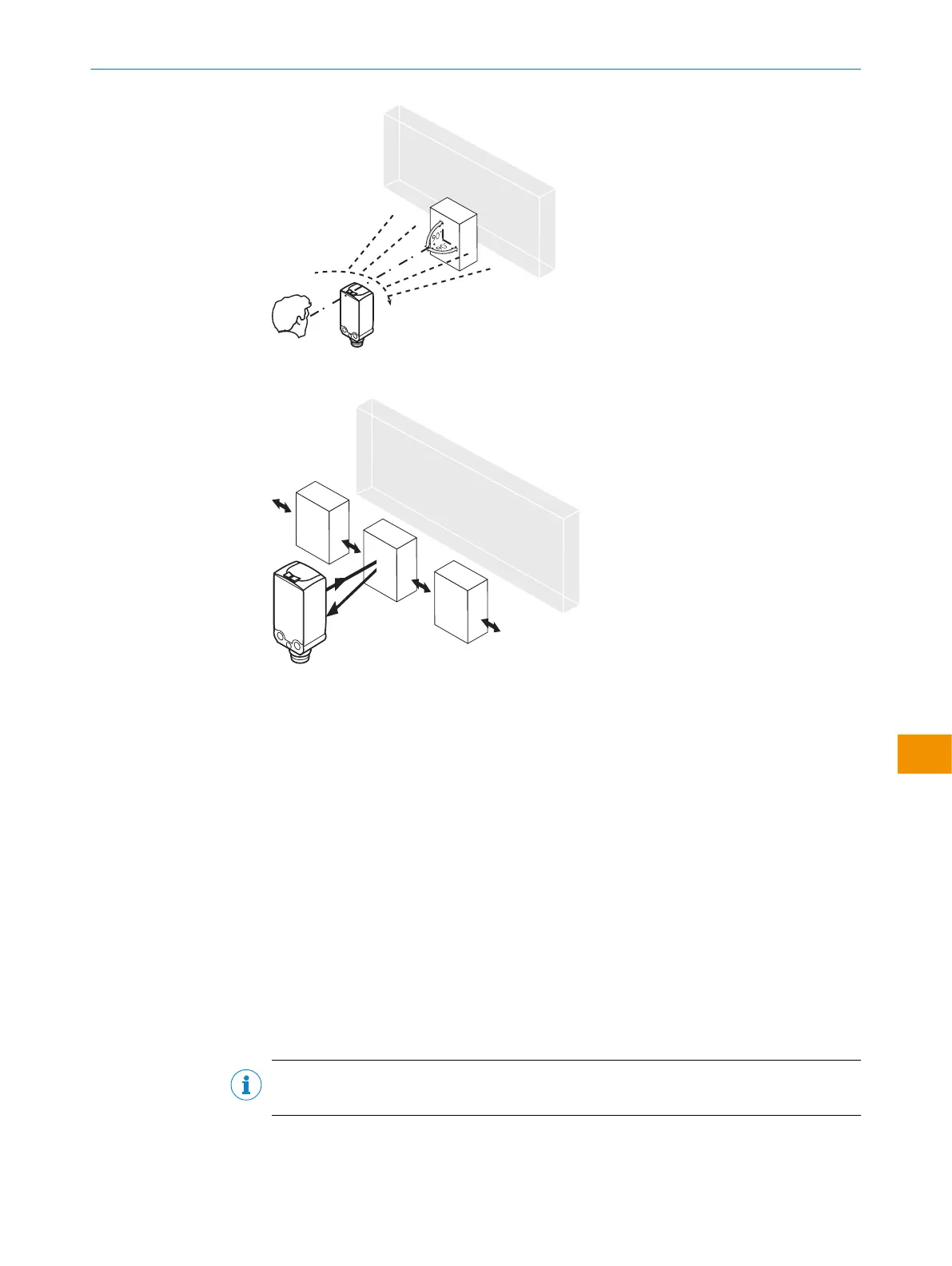 odstęp minimalny (y) pomiędzy ustawionym zasięgiem (x) a tłem.