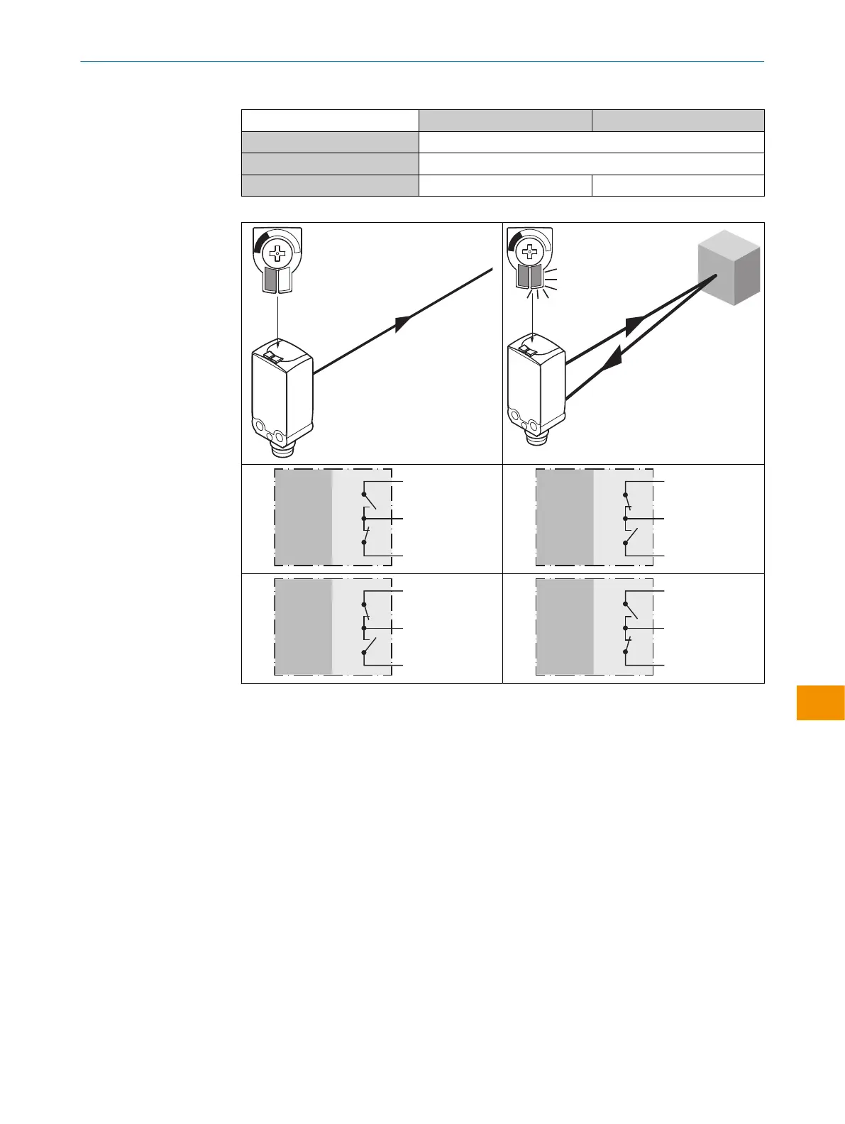 Alinhar o sensor ao objeto. Selecionar o posicionamento de forma que o feixe da luz de