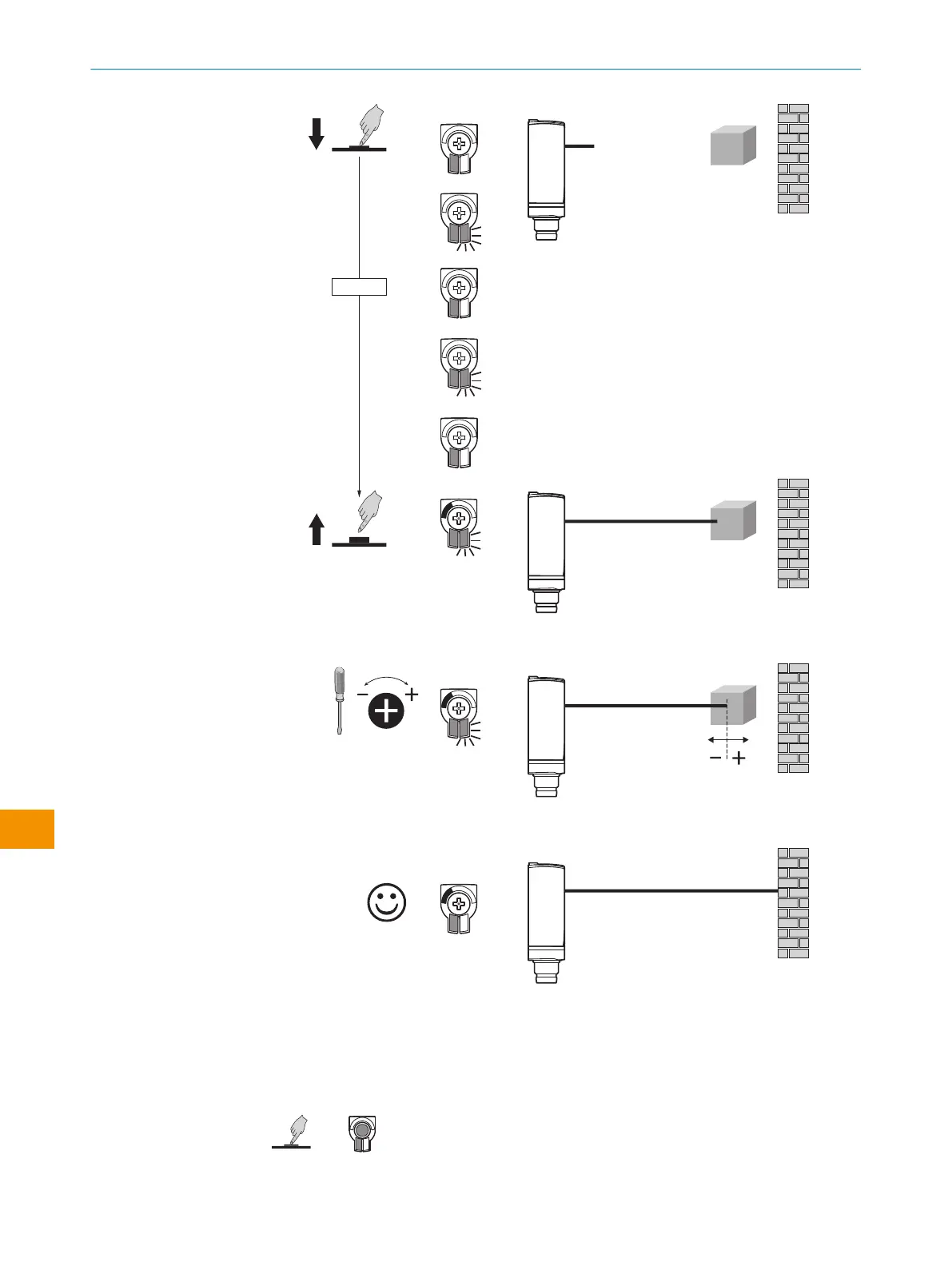Рисунок 147: WTB4F, настройка расстояния срабатывания с помощью поворотно-нажим‐