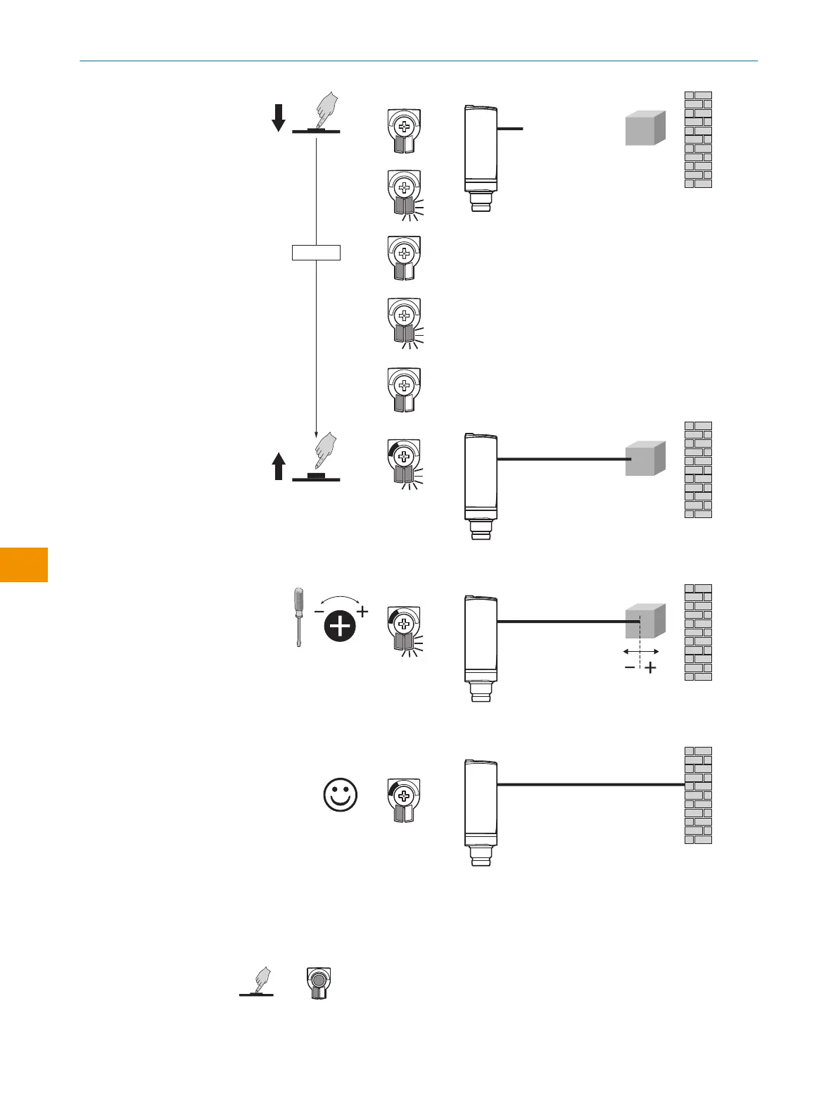 図 72: WTB4F、プッシュターン要素による検出距離の設定