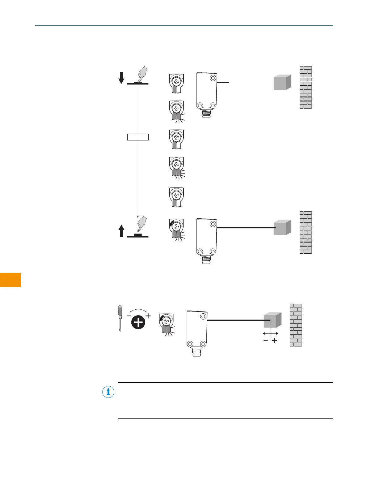 WTB4ST: po uczeniu (Teach-in) ok. 1/3 linii plamki świetlnej musi być zakryta, aby