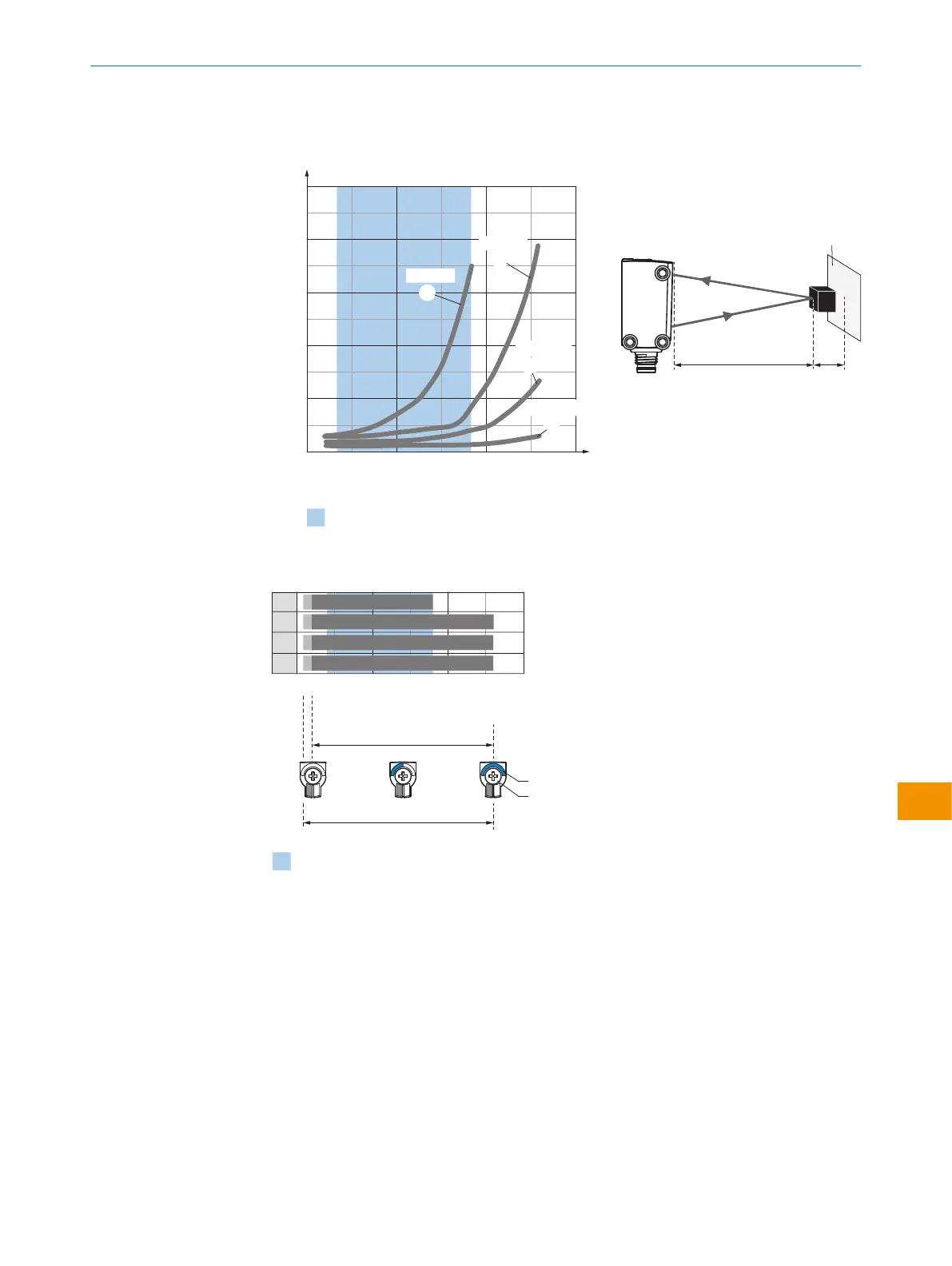 синий Рекомендуемая область расстояния срабатывания для большей производительности