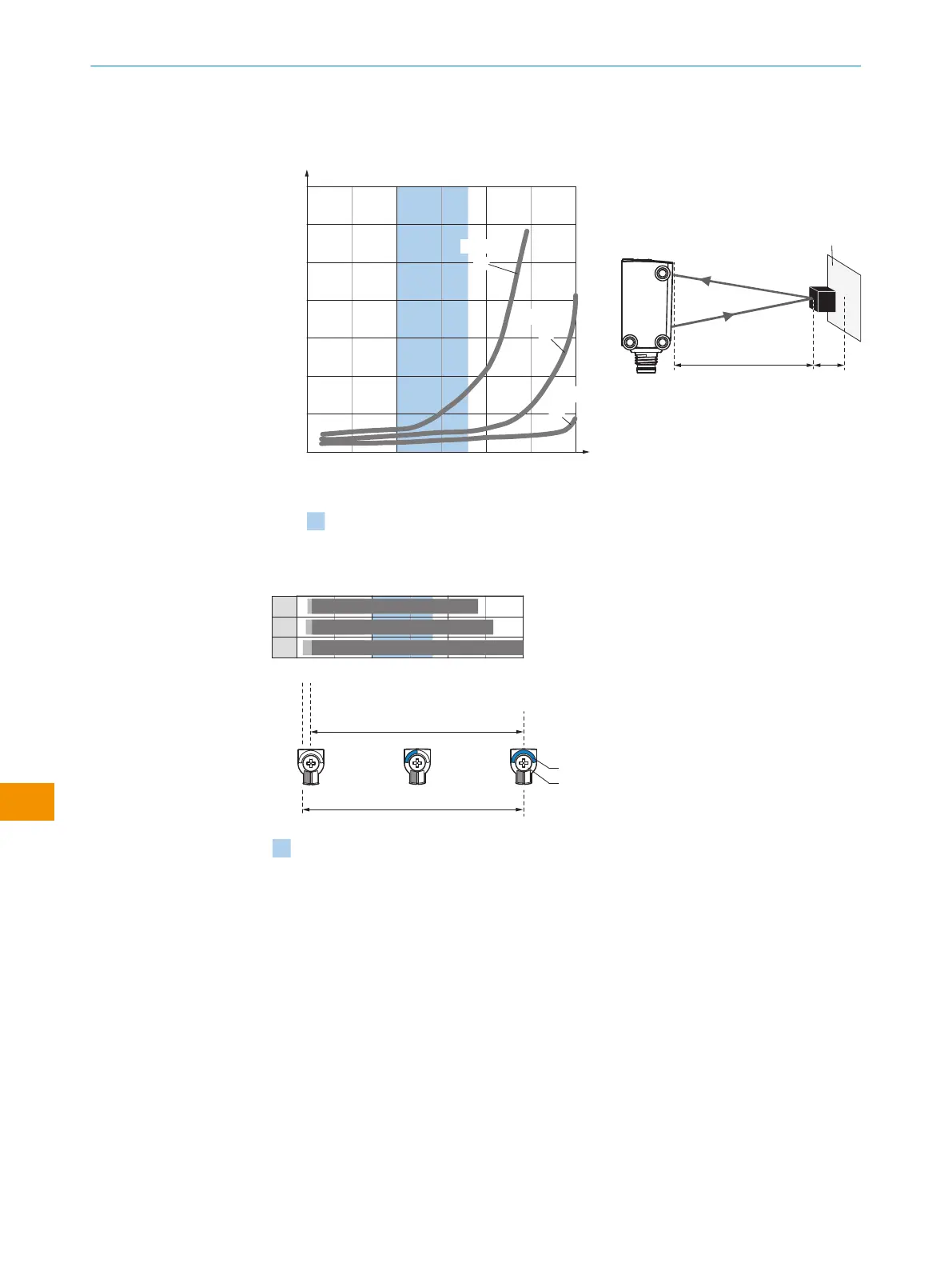 синий Рекомендуемая область расстояния срабатывания для большей производительности