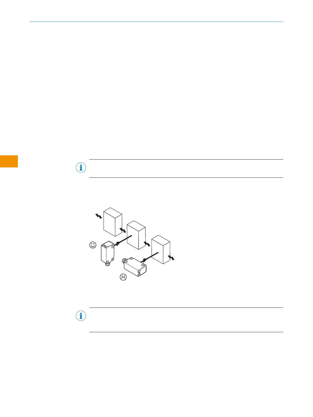 Vorzugsrichtung des Objekts zum Sensor beachten, vgl. siehe Abbildung 11, Seite 22.