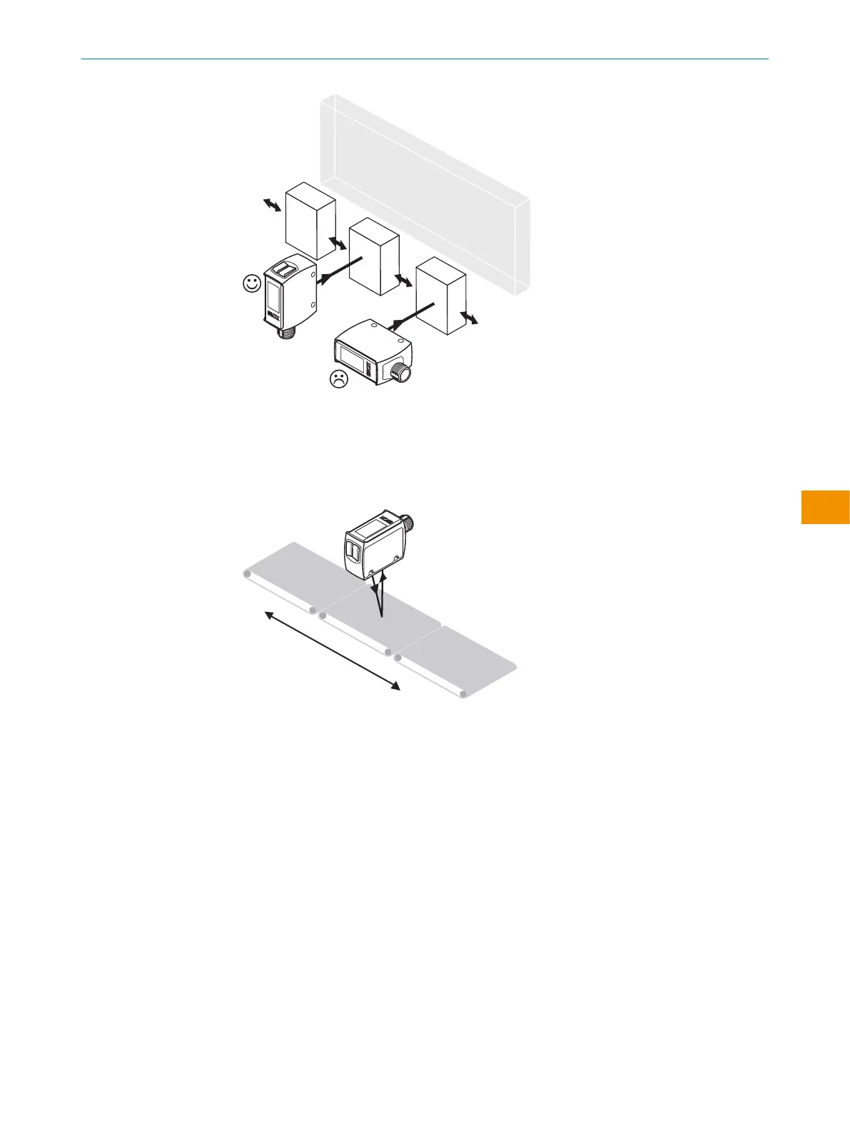 Tenga en cuenta la dirección preferente del objeto en relación con el sensor, véase