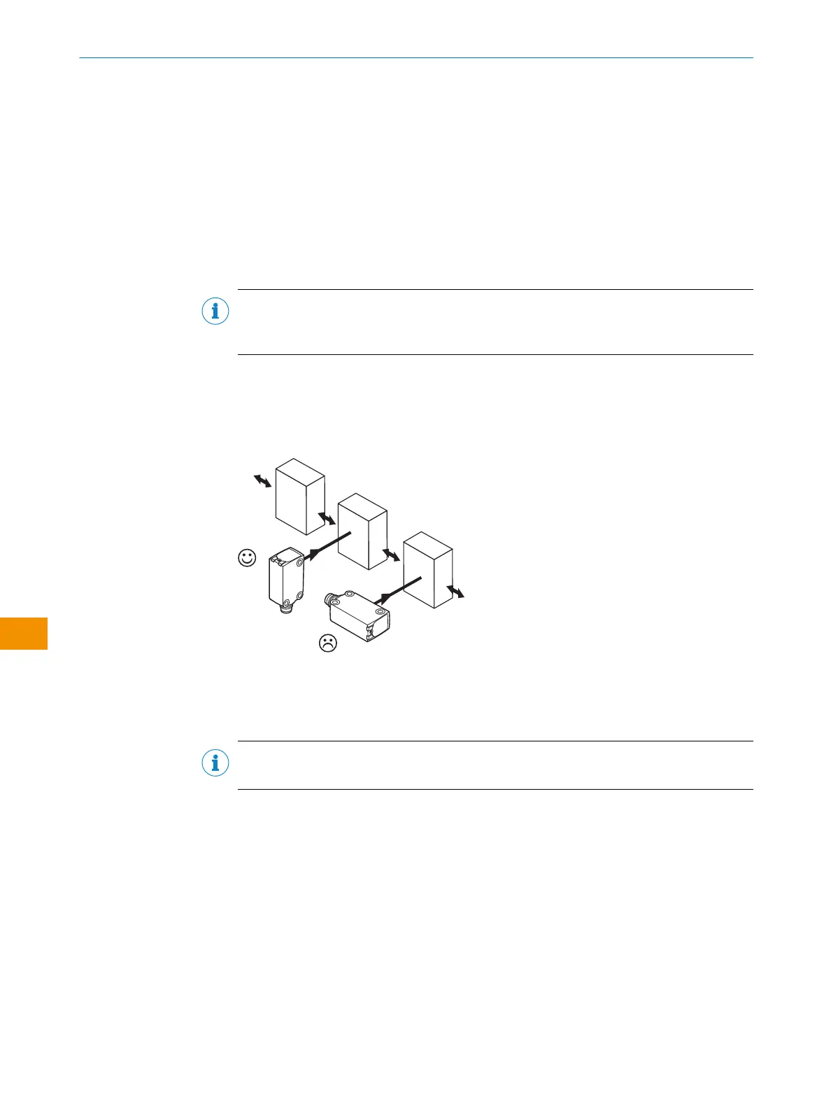 Zwrócić uwagę na preferowany kierunek obiektu względem czujnika, por. patrz