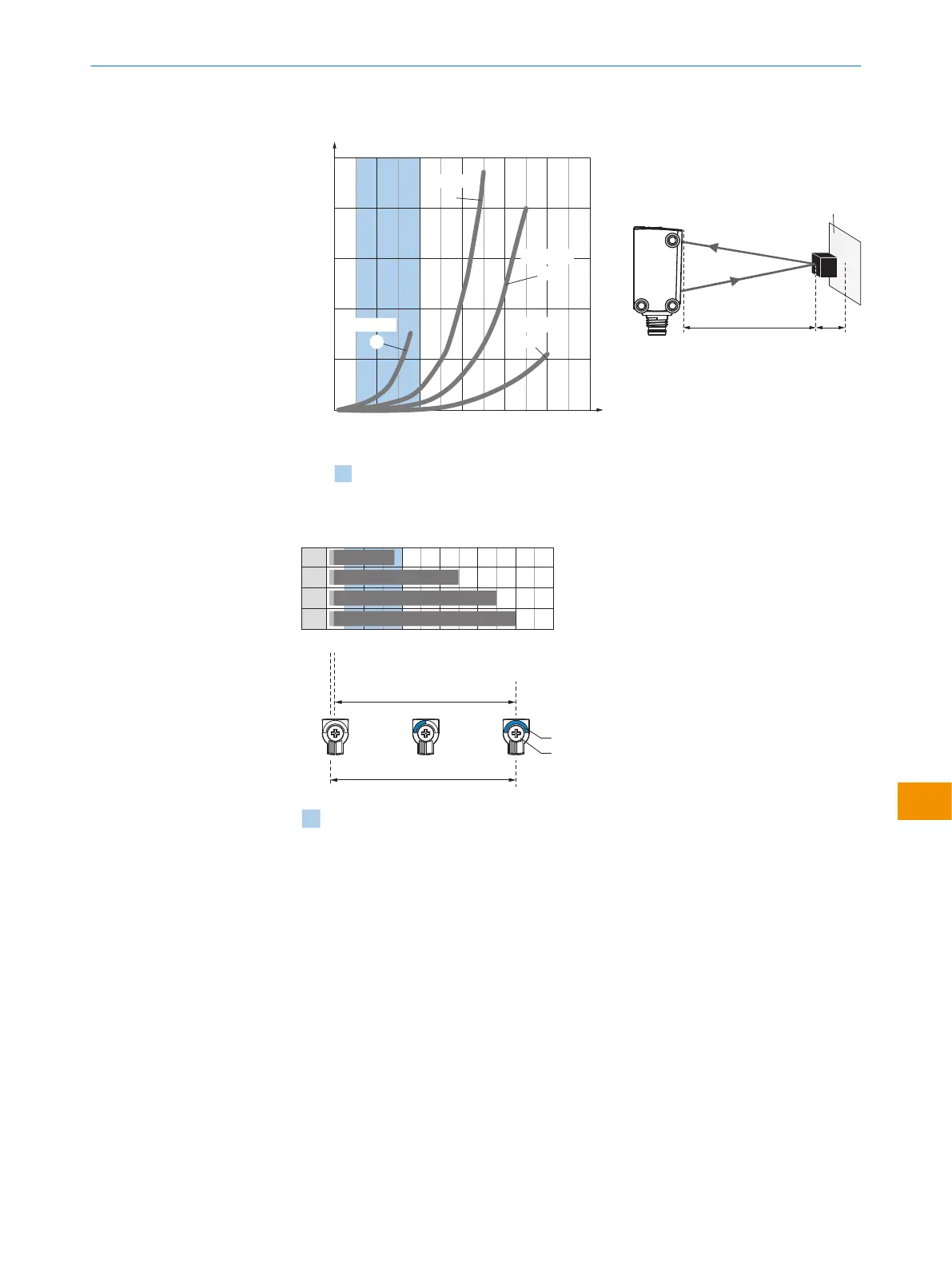 синий Рекомендуемая область расстояния срабатывания для большей производительно‐