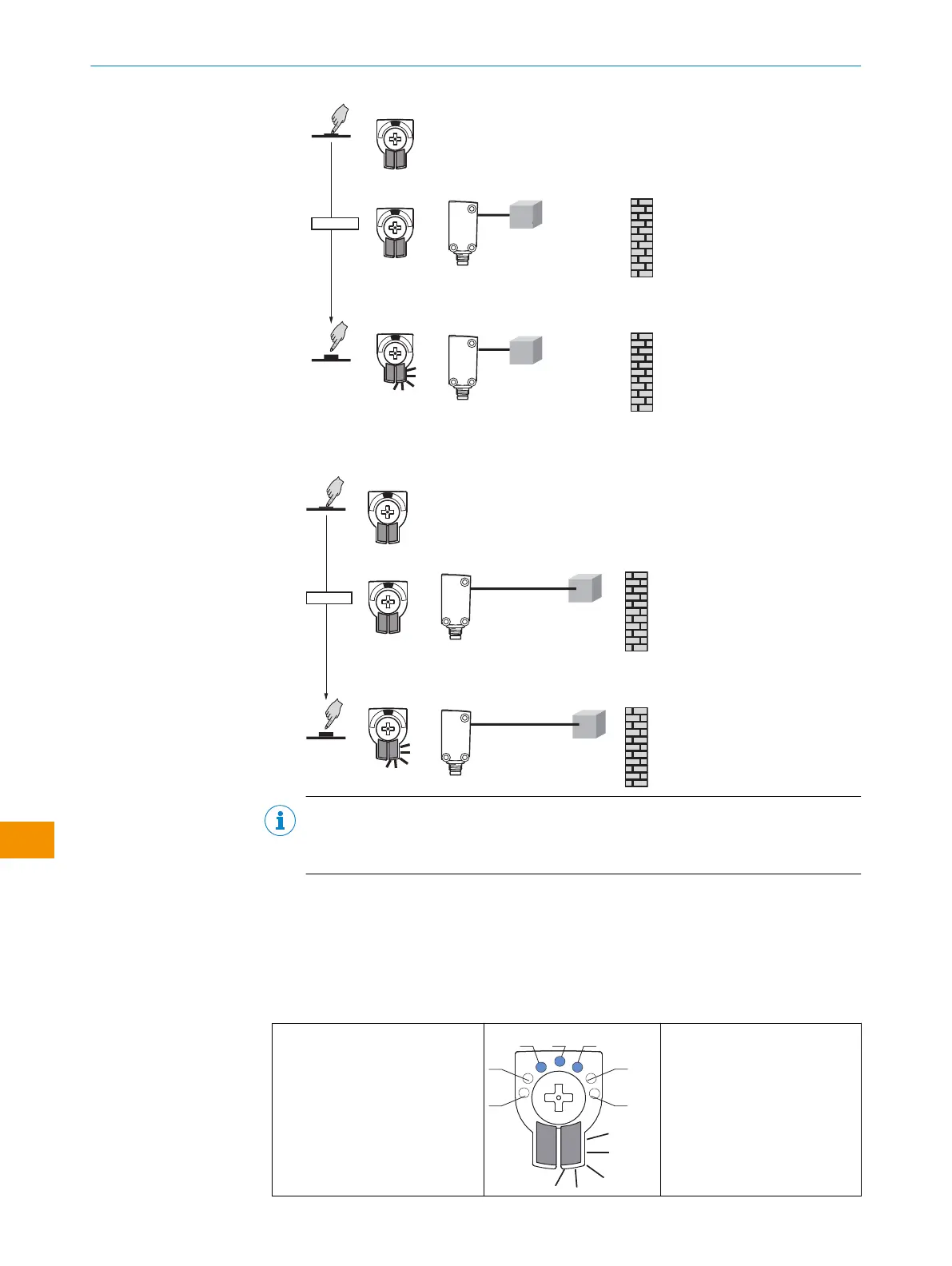 2. 短暂停顿后,黄色 LED 再次闪烁,现在可以示教第 2 个。触发感应距离。