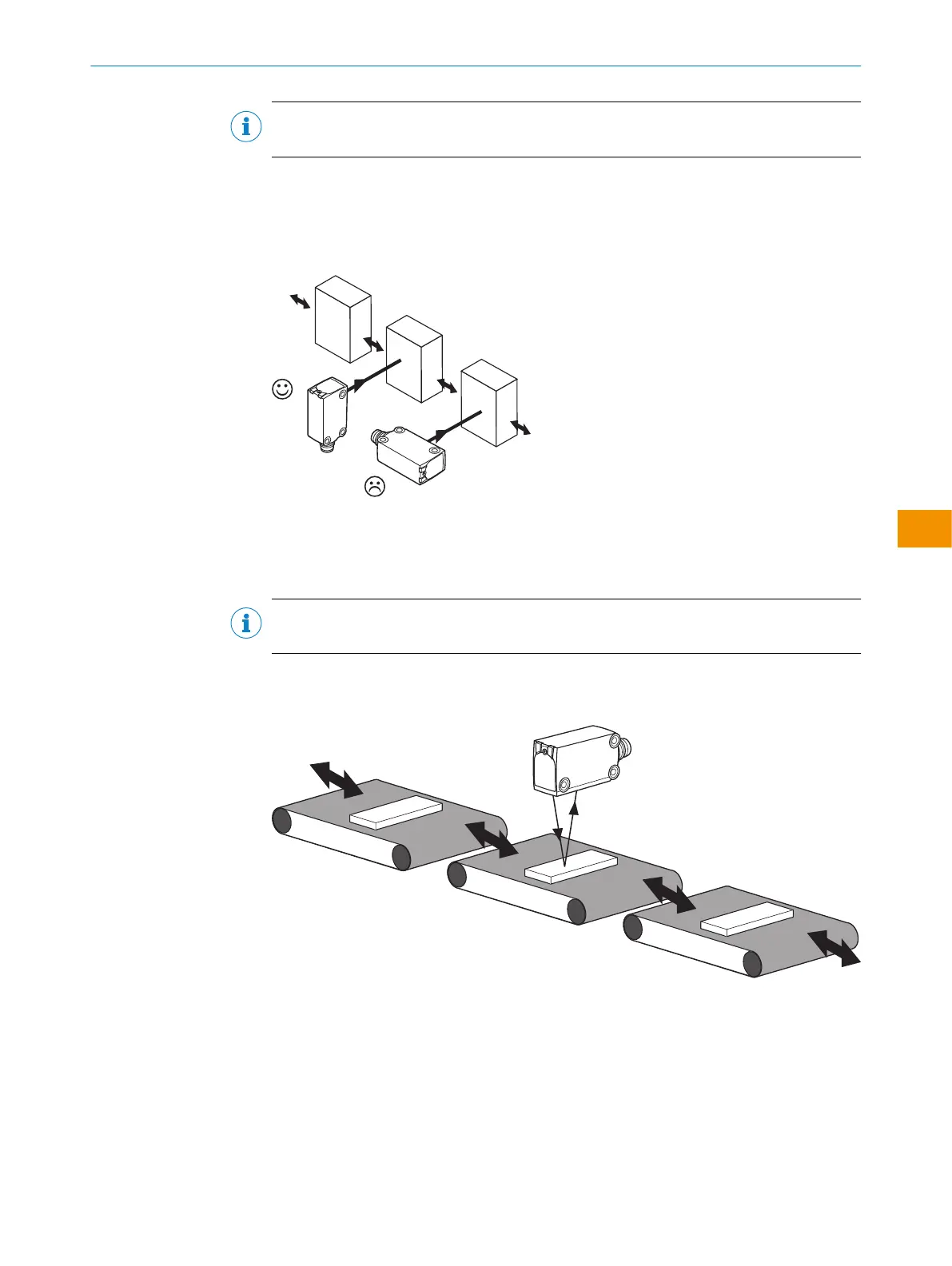 Note the preferred alignment of the sensor relative to the movement direction of the
