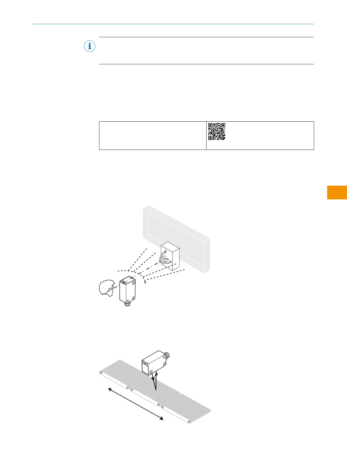 Align the sensor with the object. Select the position so that the red emitted light beam