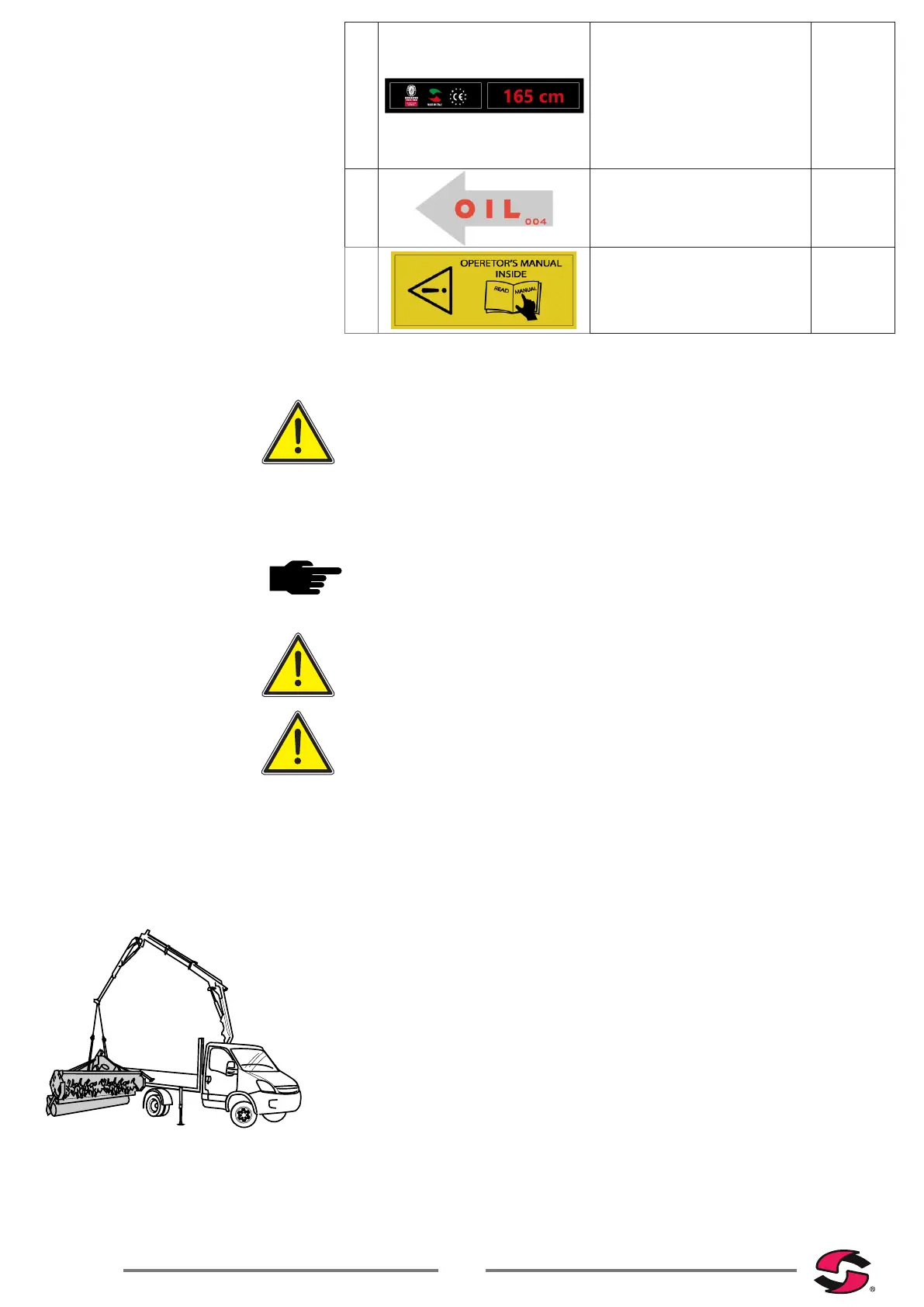 • Be well secured to the lorry, paying attention not to crush any hydraulic pipes;