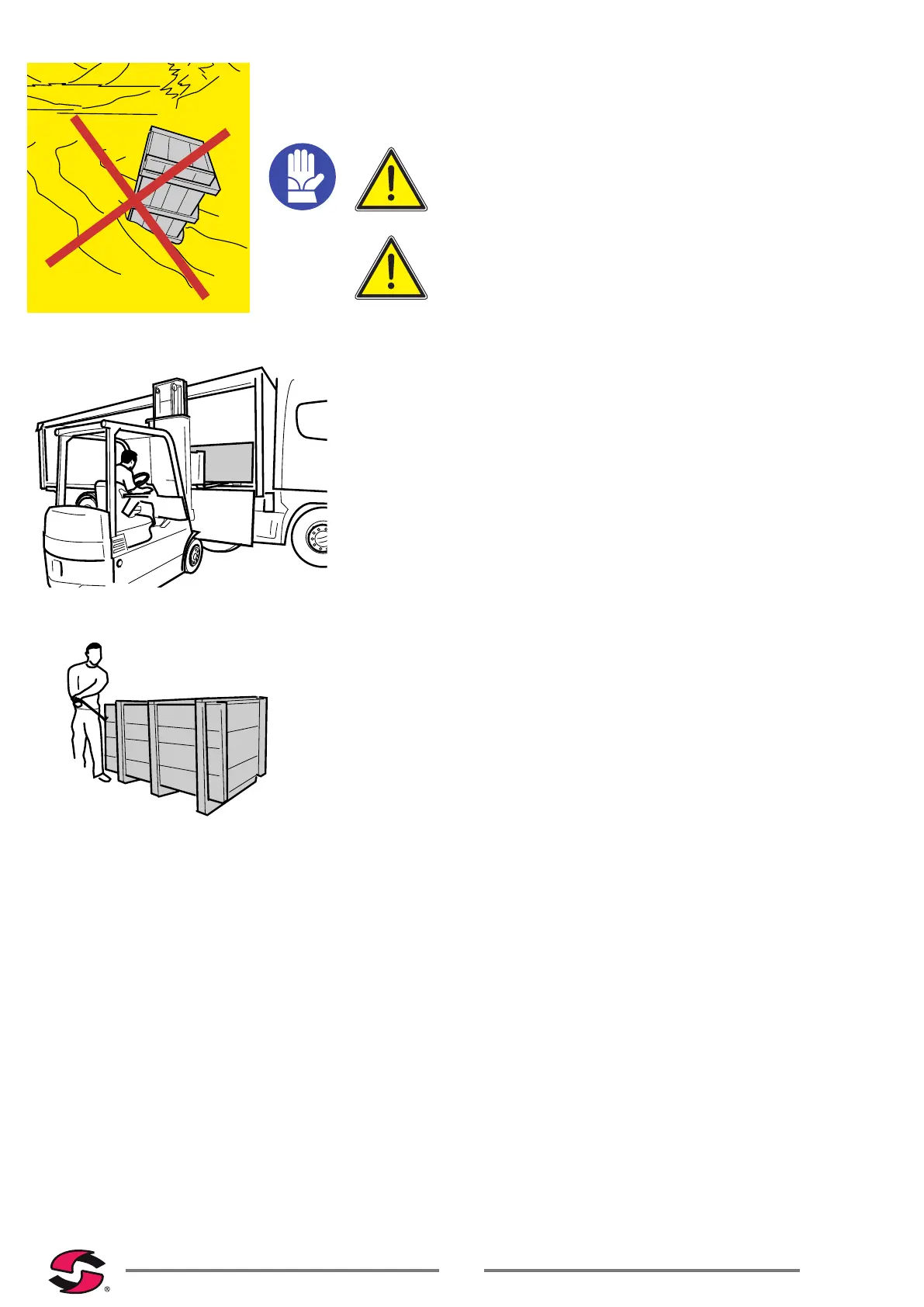If the Tiller is contained inside a wooden box, use a forklift of adequate capacity for