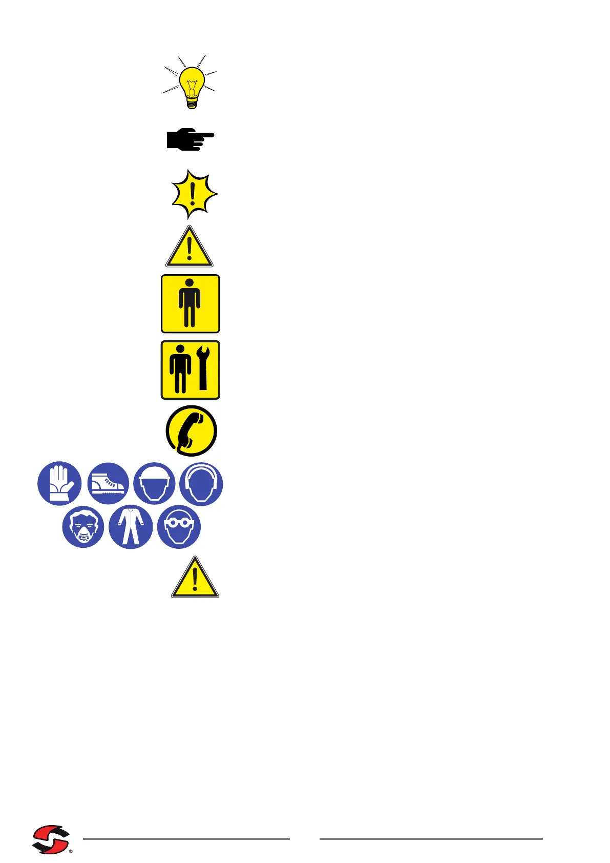 This operation and maintenance manual includes a number of symbols whose