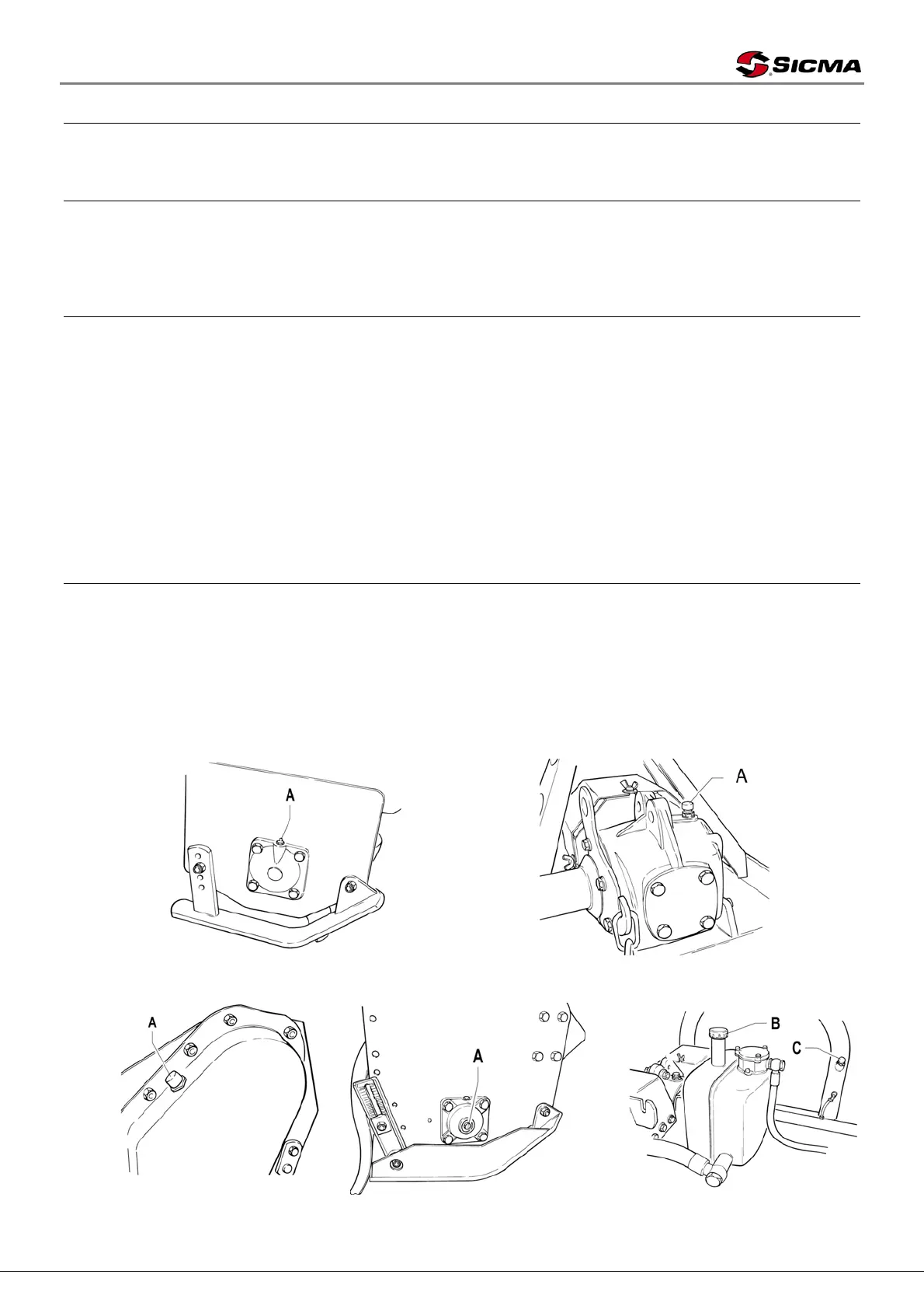 - Check oil level of the rotor support on ST, SM, SP, RG, SHV-SHF-SHE and SM-F tillers (A -