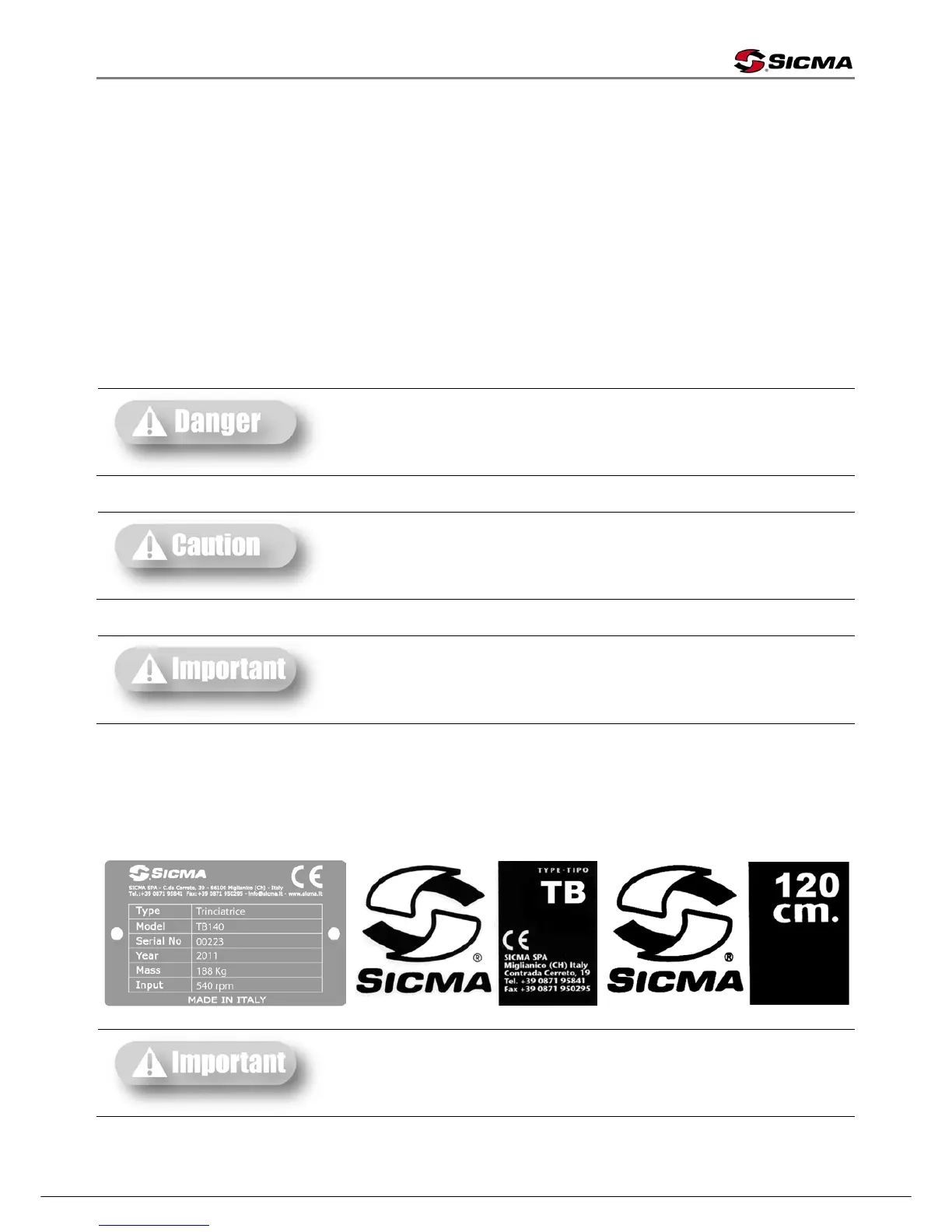 Identification plates are placed on every shredder and are structured as follows: