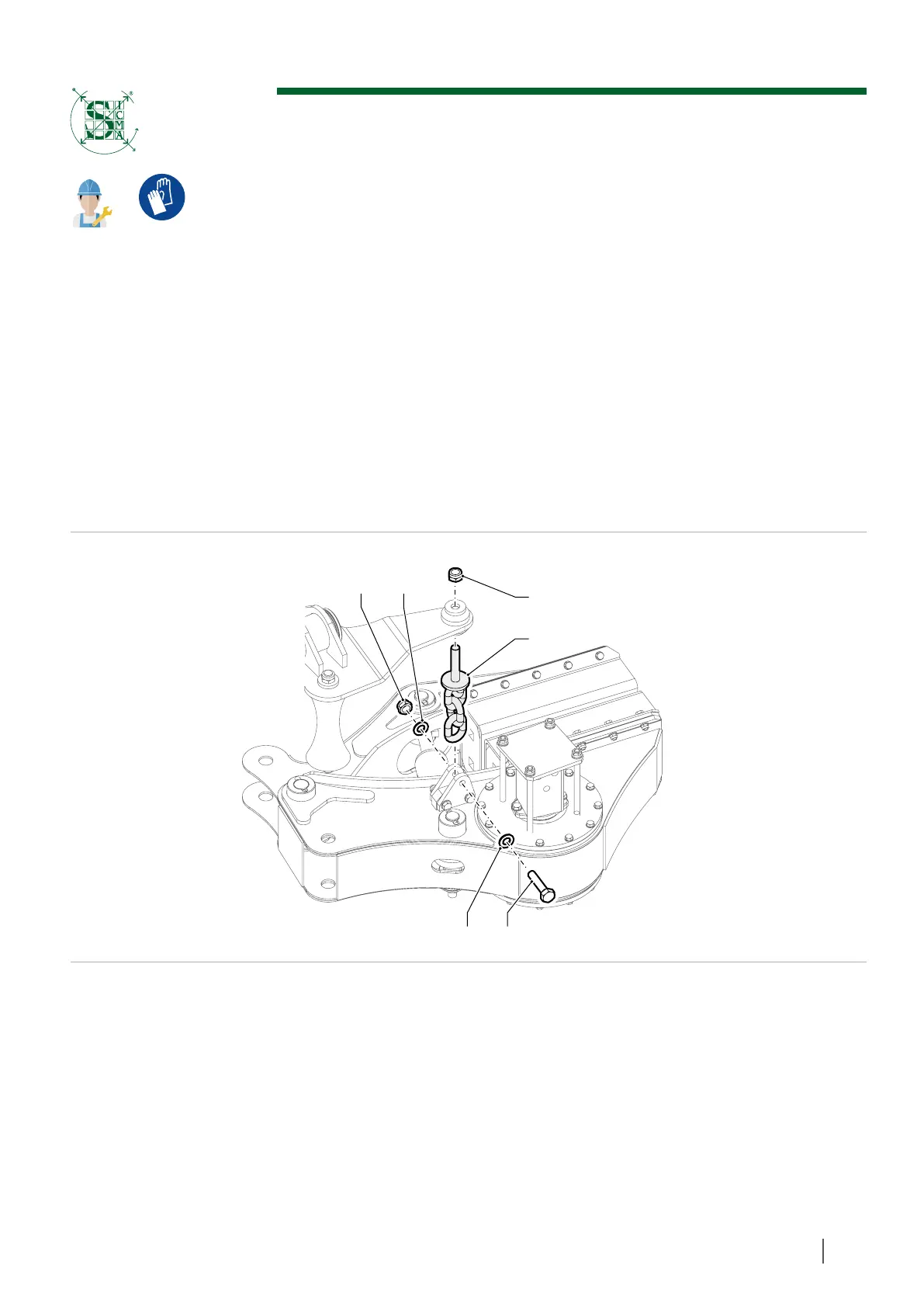 C) Remove the screw (1), nut (3) and washers (2) that secure the chain (5)