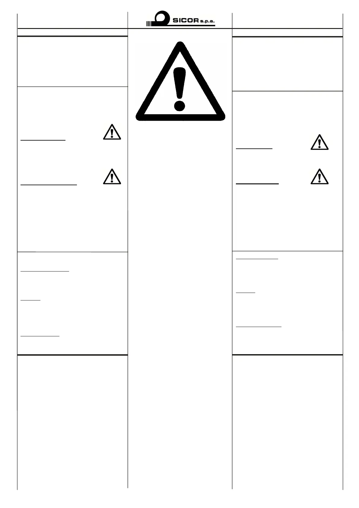 PERICOLO o ATTENZIONE