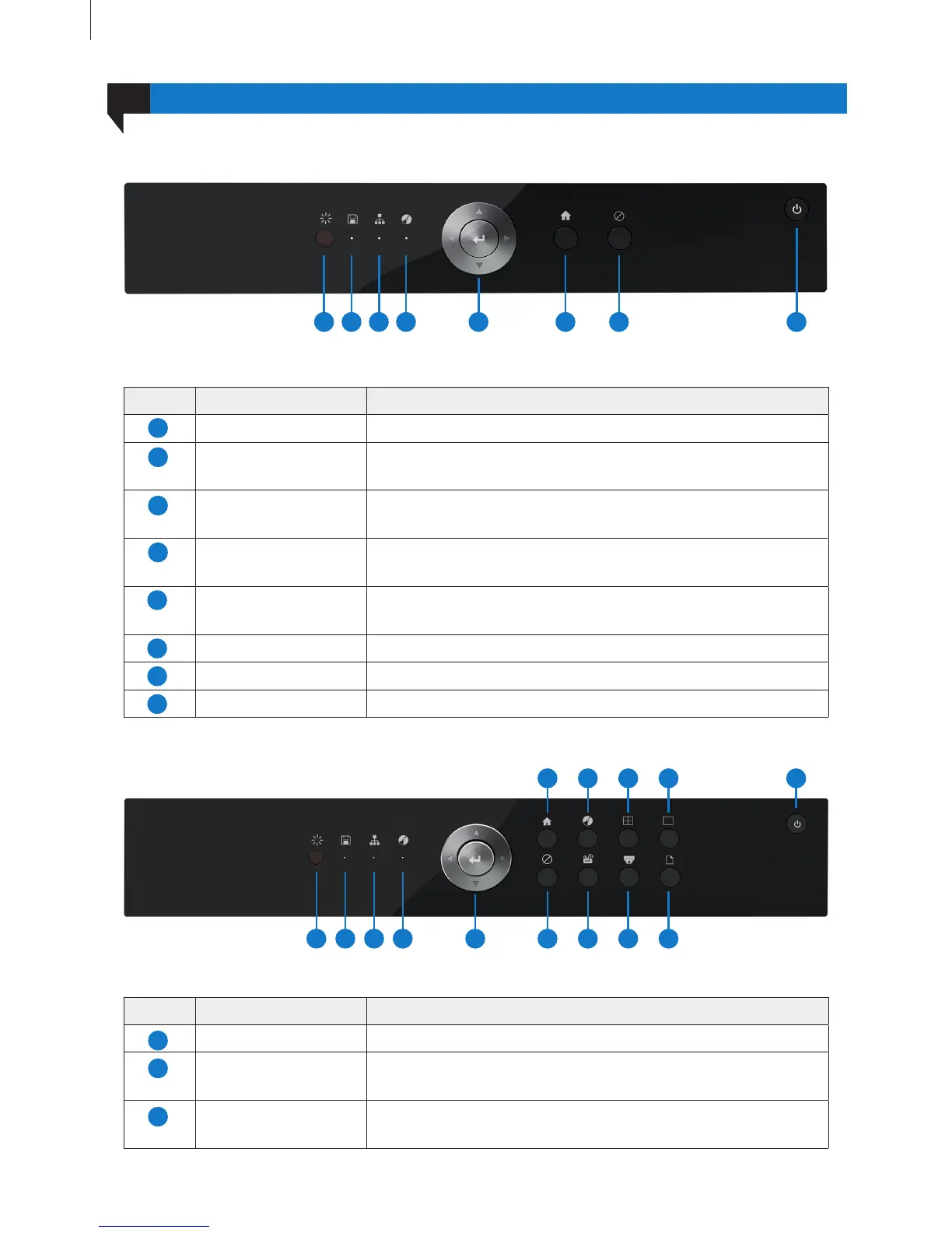 Power Power on/off the DVR.