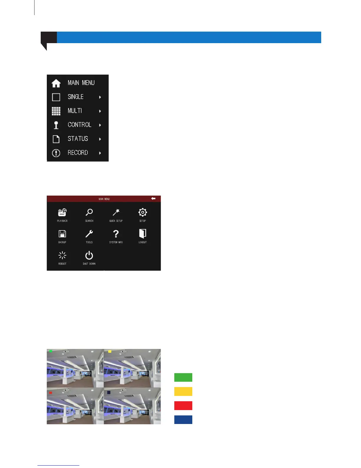 Press MENU button on the front panel or operate with remote controller also can display the main menu.