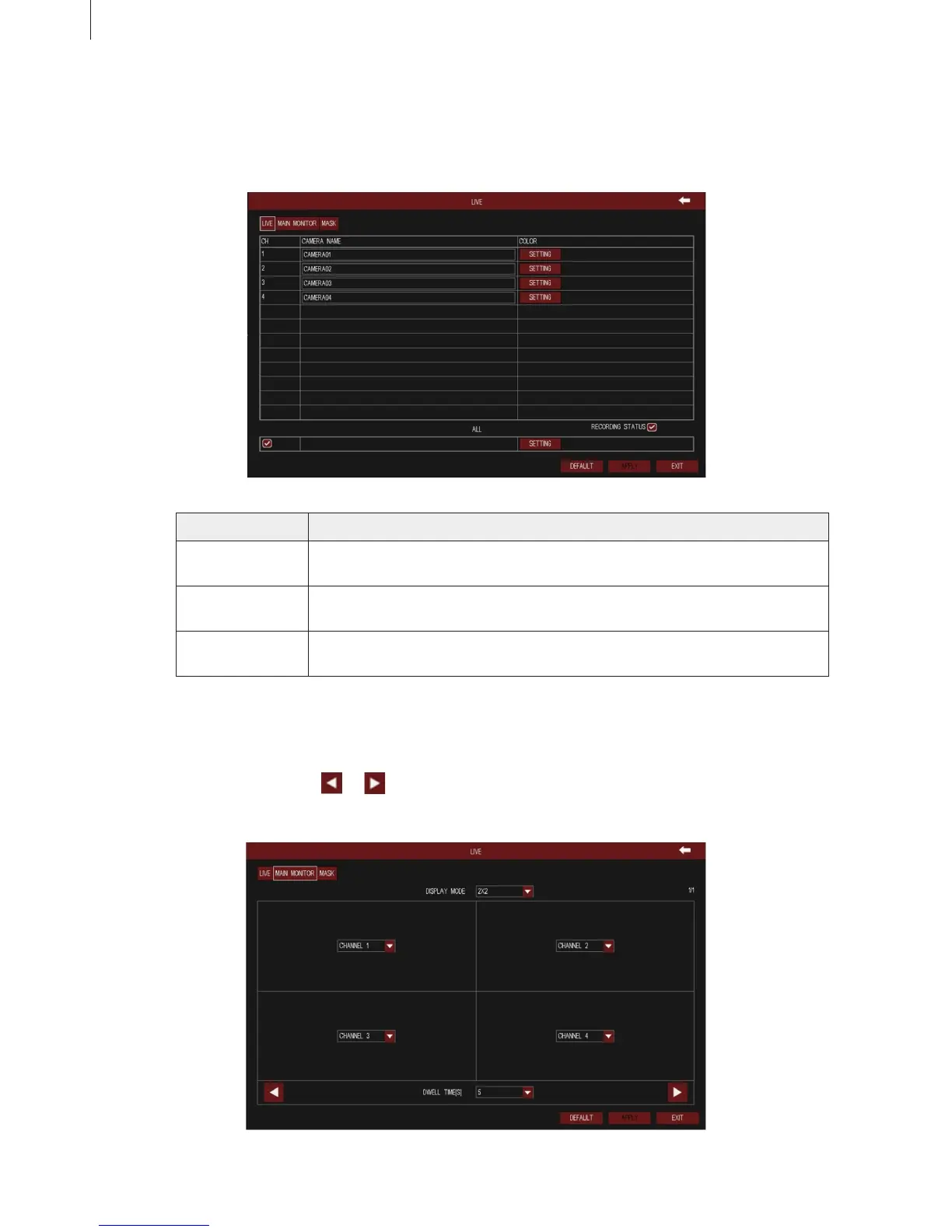 Camera Name User can self-dene the channel name. Click camera name to pop up a soft