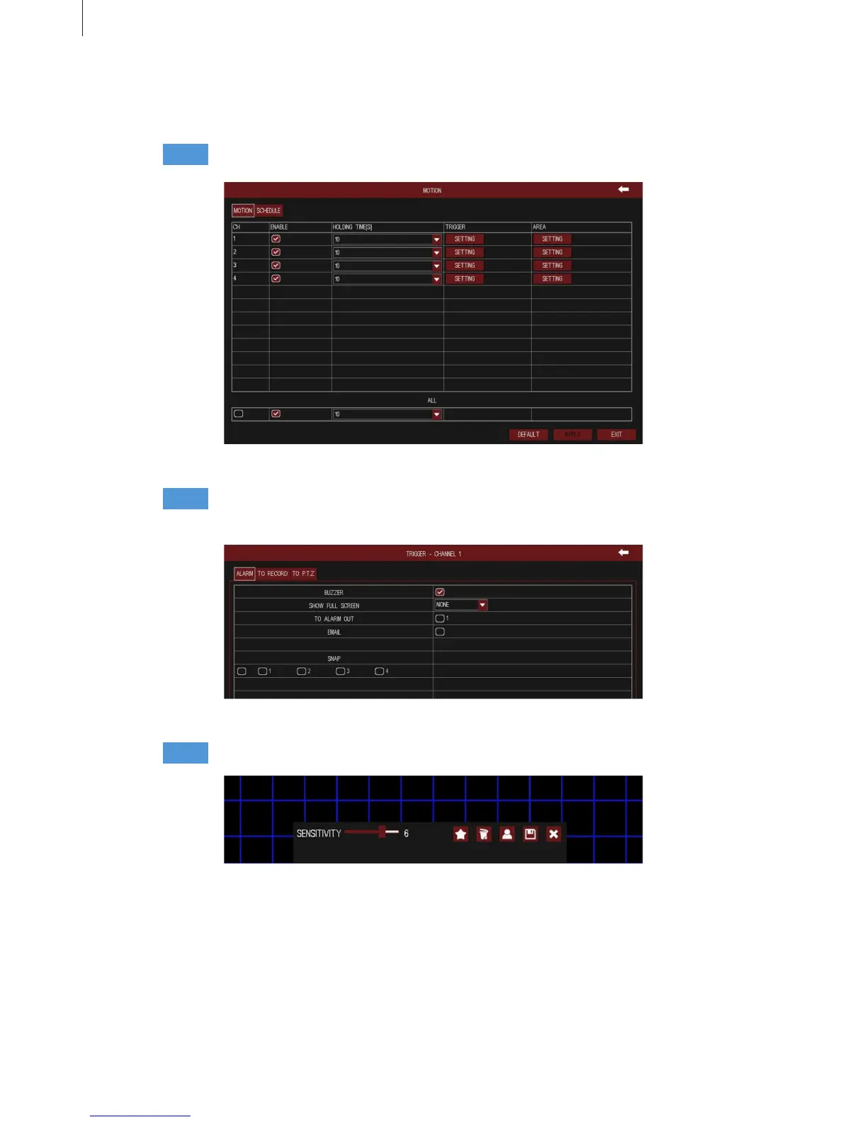 Click “Setting” button of motion trigger to pop up a window, as shown in Fig 3-52. The
