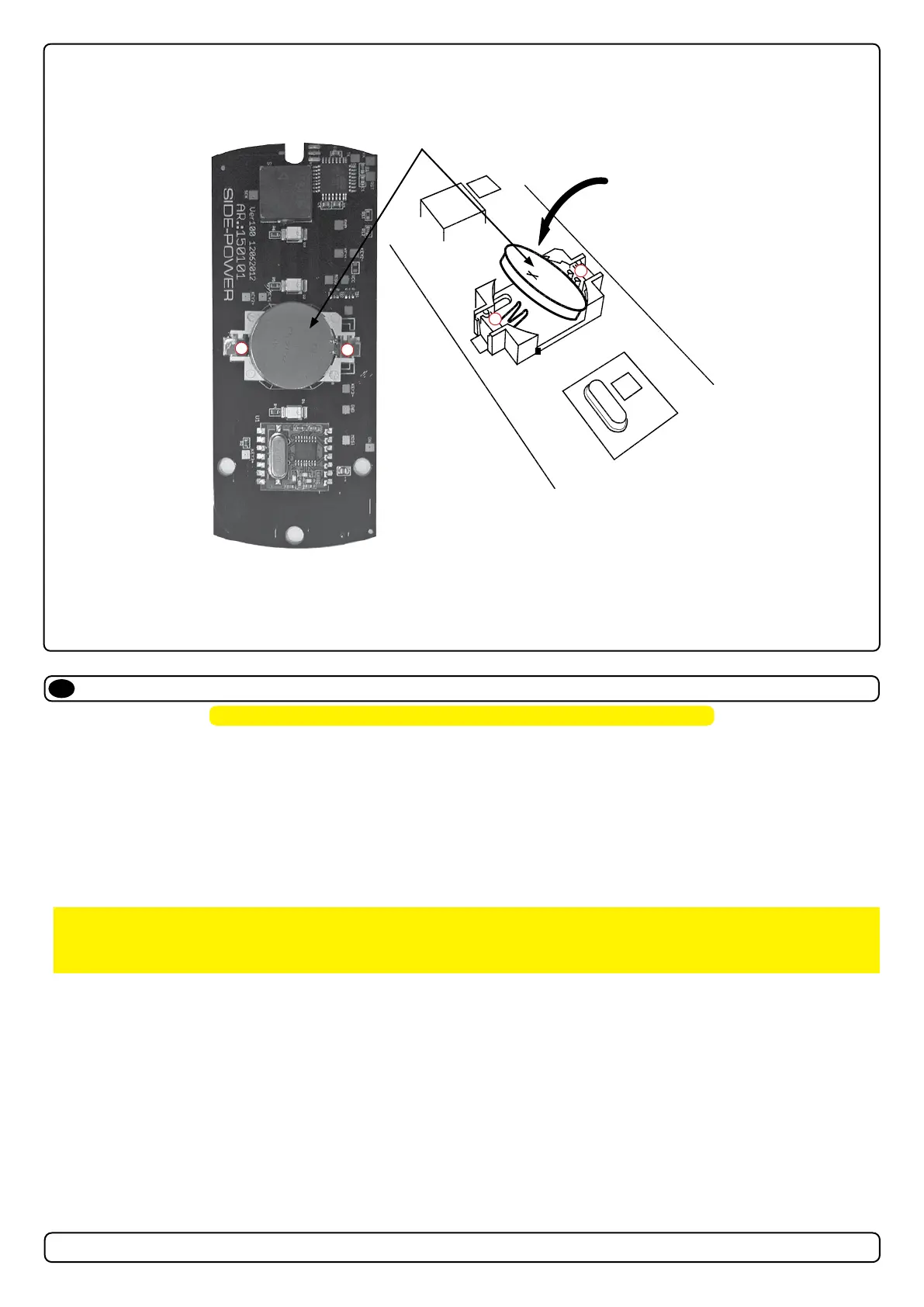 3. Insert the new battery (Type CR2032, 3V - Brand name recommended). Ensure to insert the battery with the positive pole up diagonally into the