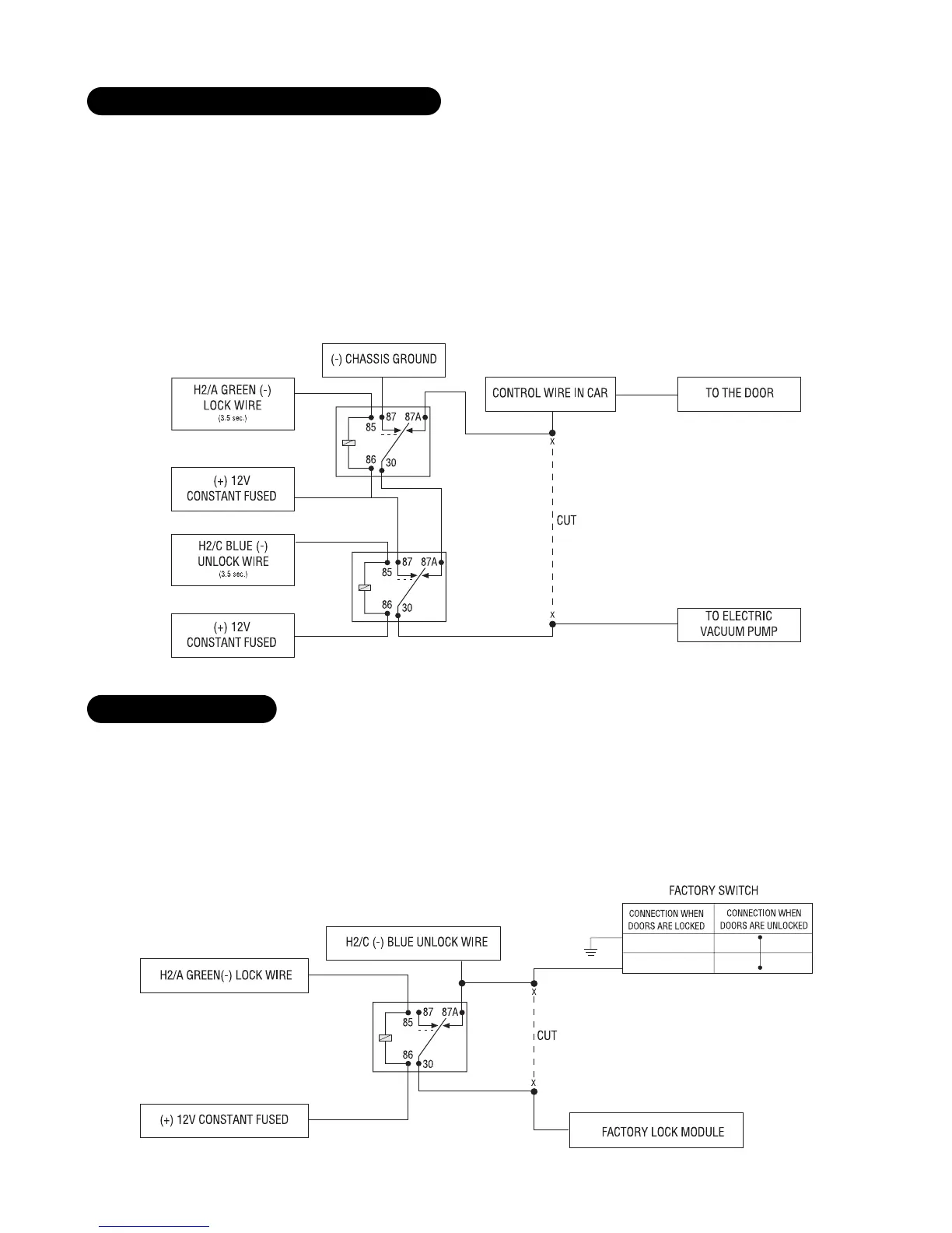 This system usually requires a negative pulse to unlock, and cutting the wire to lock the door. In some vehicles,