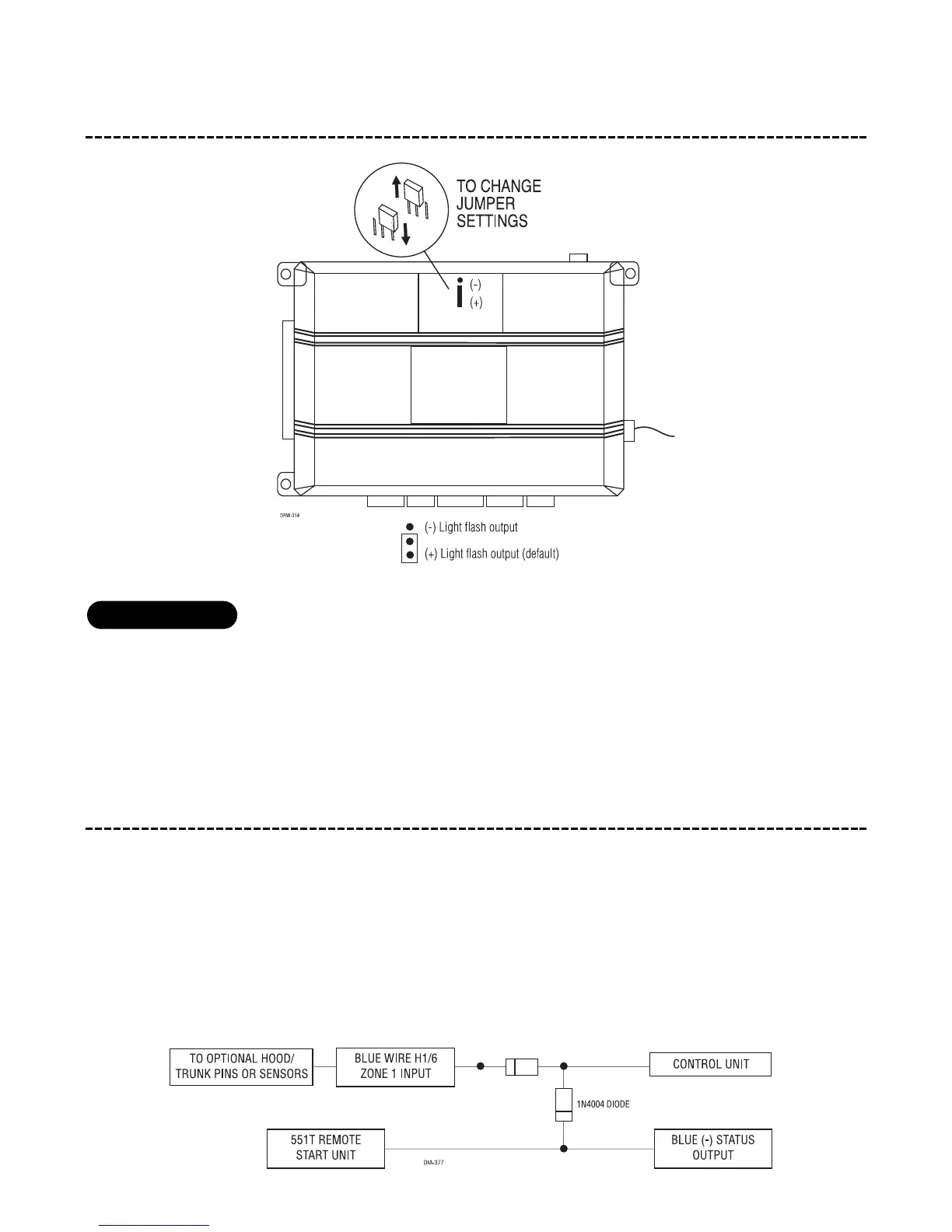 This jumper is used to determine the light flash output. In the (+) position, the on-board relay is enabled and