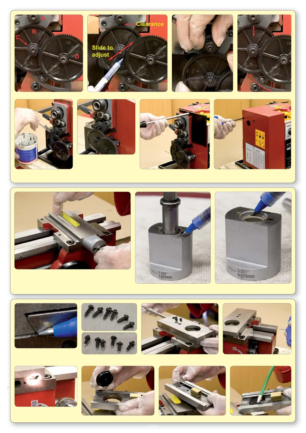 147. Assemble cross slide and gib strip. 148. Fit adjusting screws lightly.