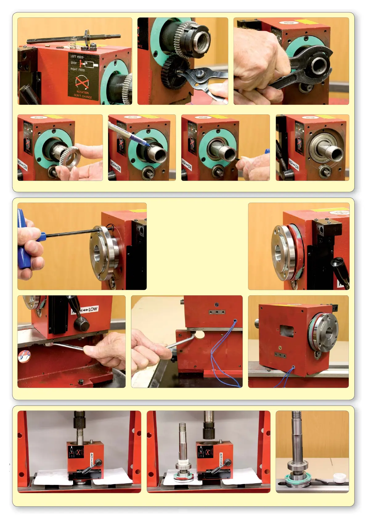 51. Press spindle out of head. 52. Remove spacer and key.