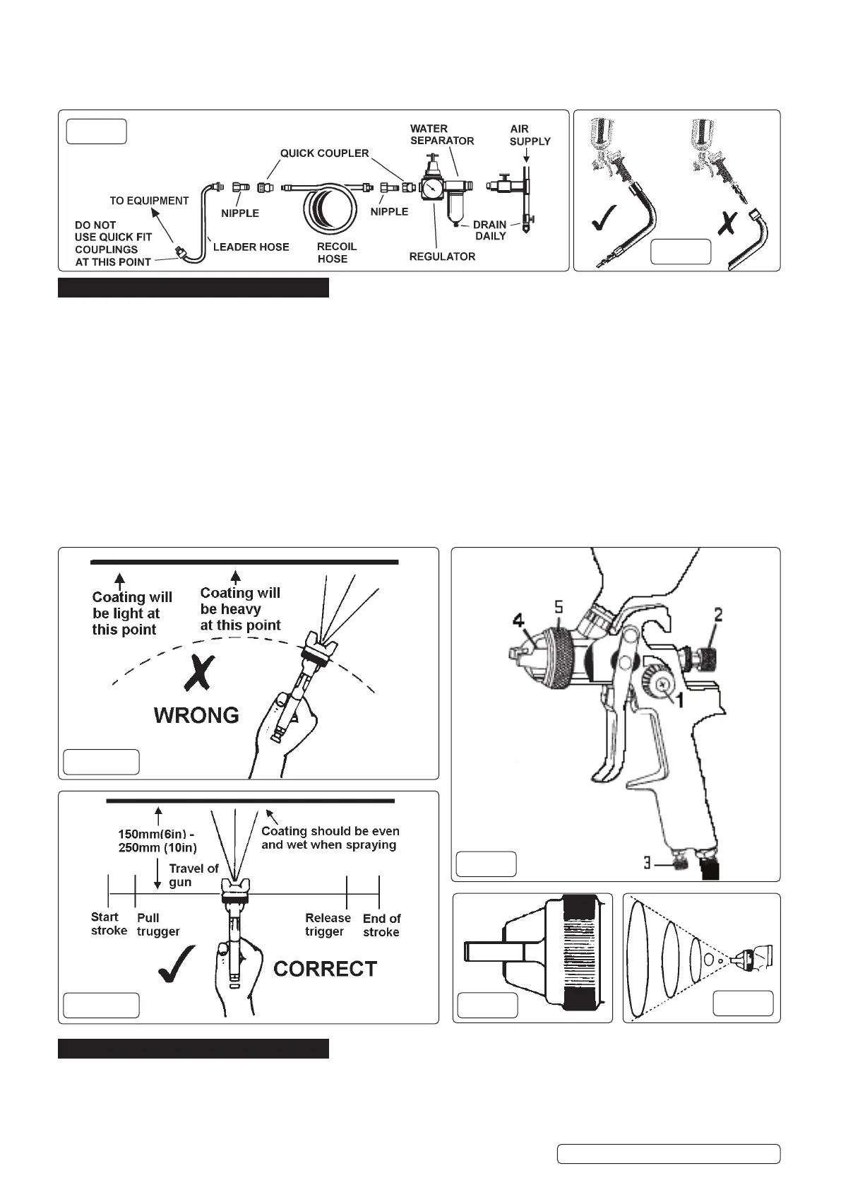 5.2. Spray from a distance of about 6 to 10 inches (150 to 250mm) depending on the material and the atomizing pressure. The material