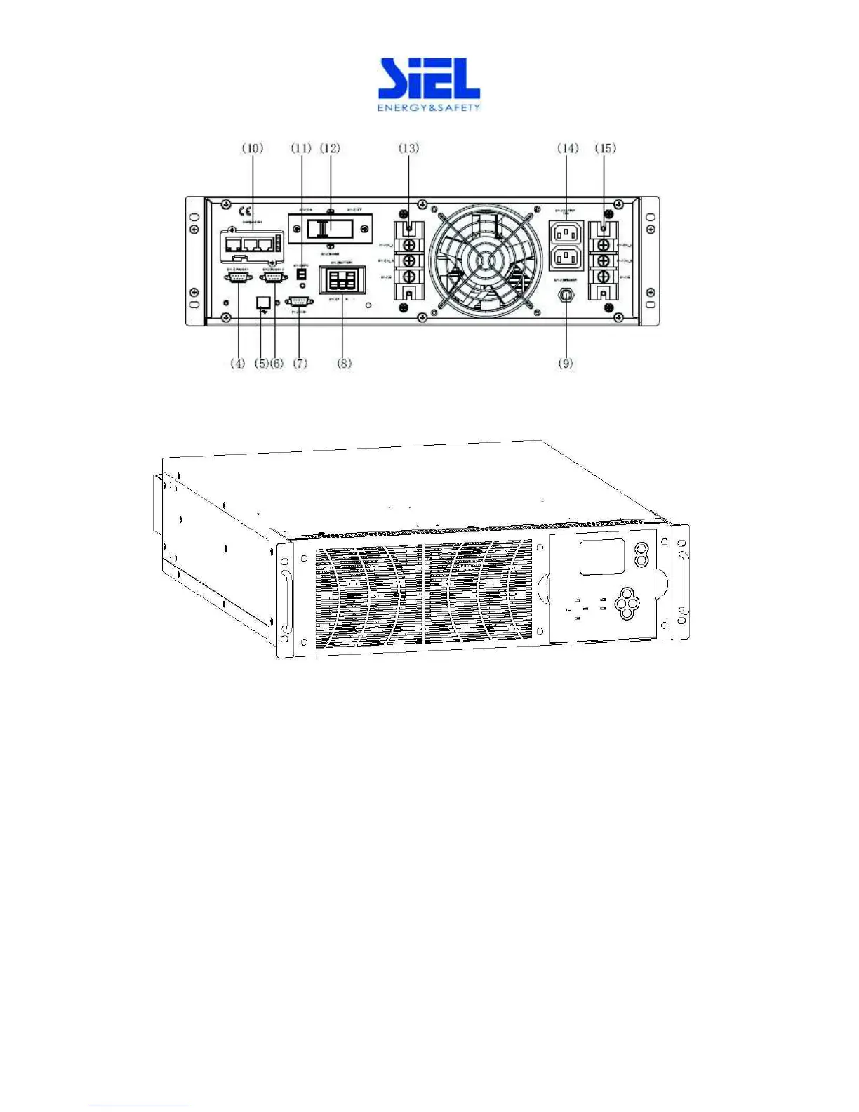 Intelligent slot (11) EPO (12) Input breaker (13) Input terminal (14) Output IEC (15)