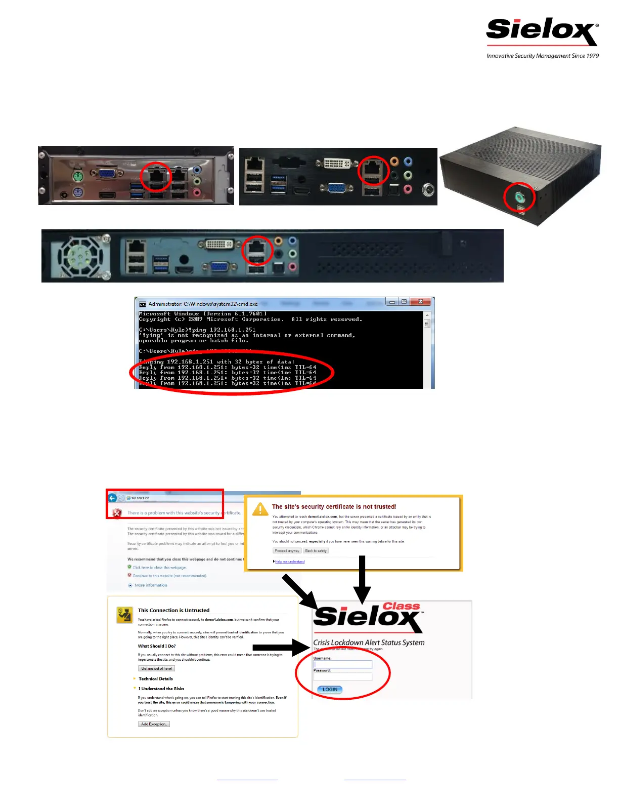 12. Once the Sielox Class or AnyWare Login page is displayed, log in using the default credentials,