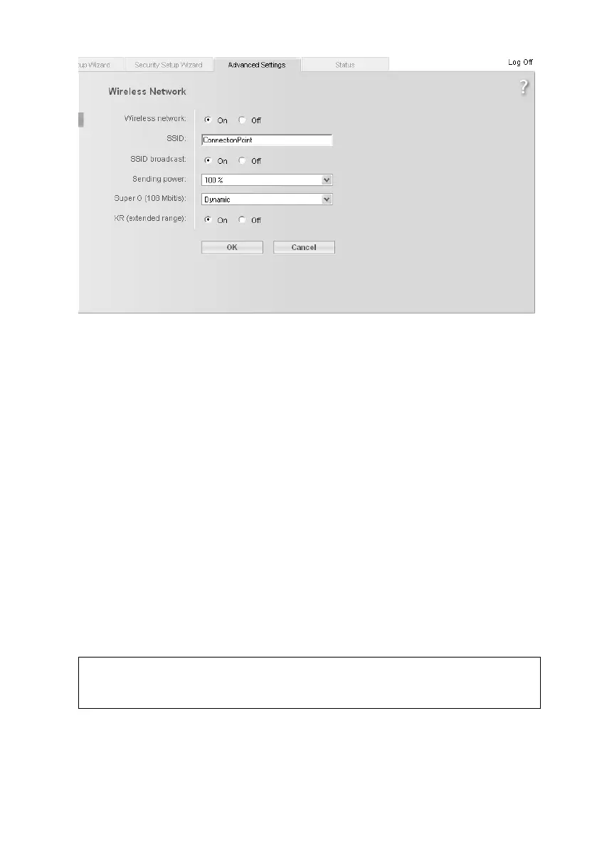 increased. For security reasons you should deactivate SSID broadcast (see below).