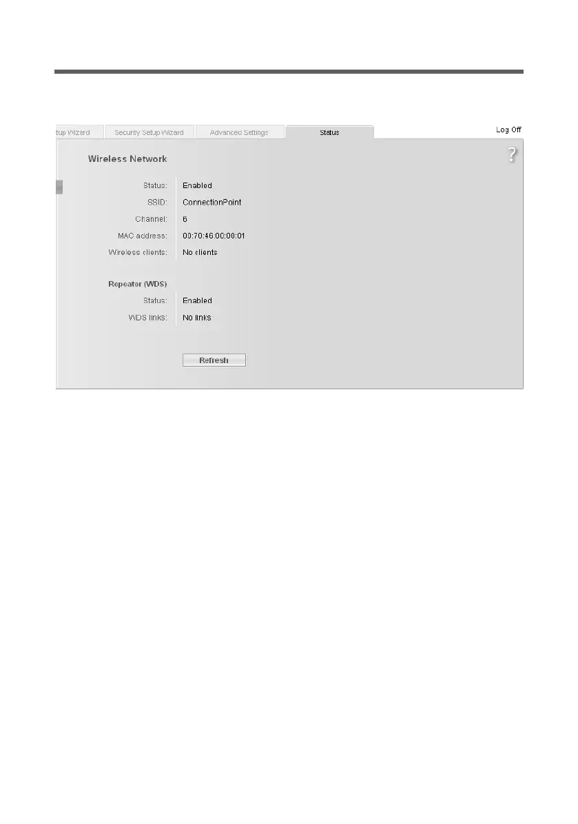 On the Wireless Network screen in the Status menu you will find information about