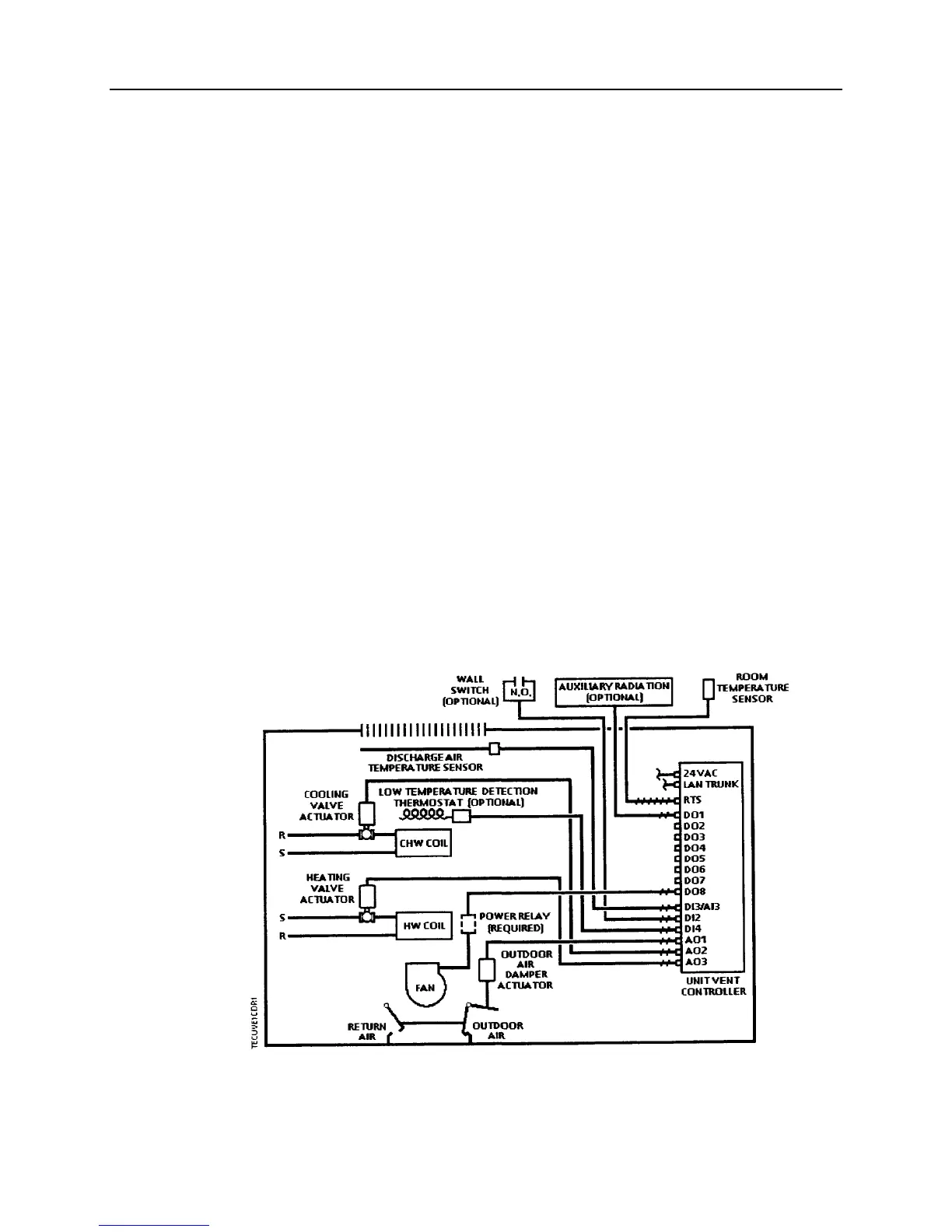 heating and cooling actuators. The unit ventilator fan is also controlled in this application.