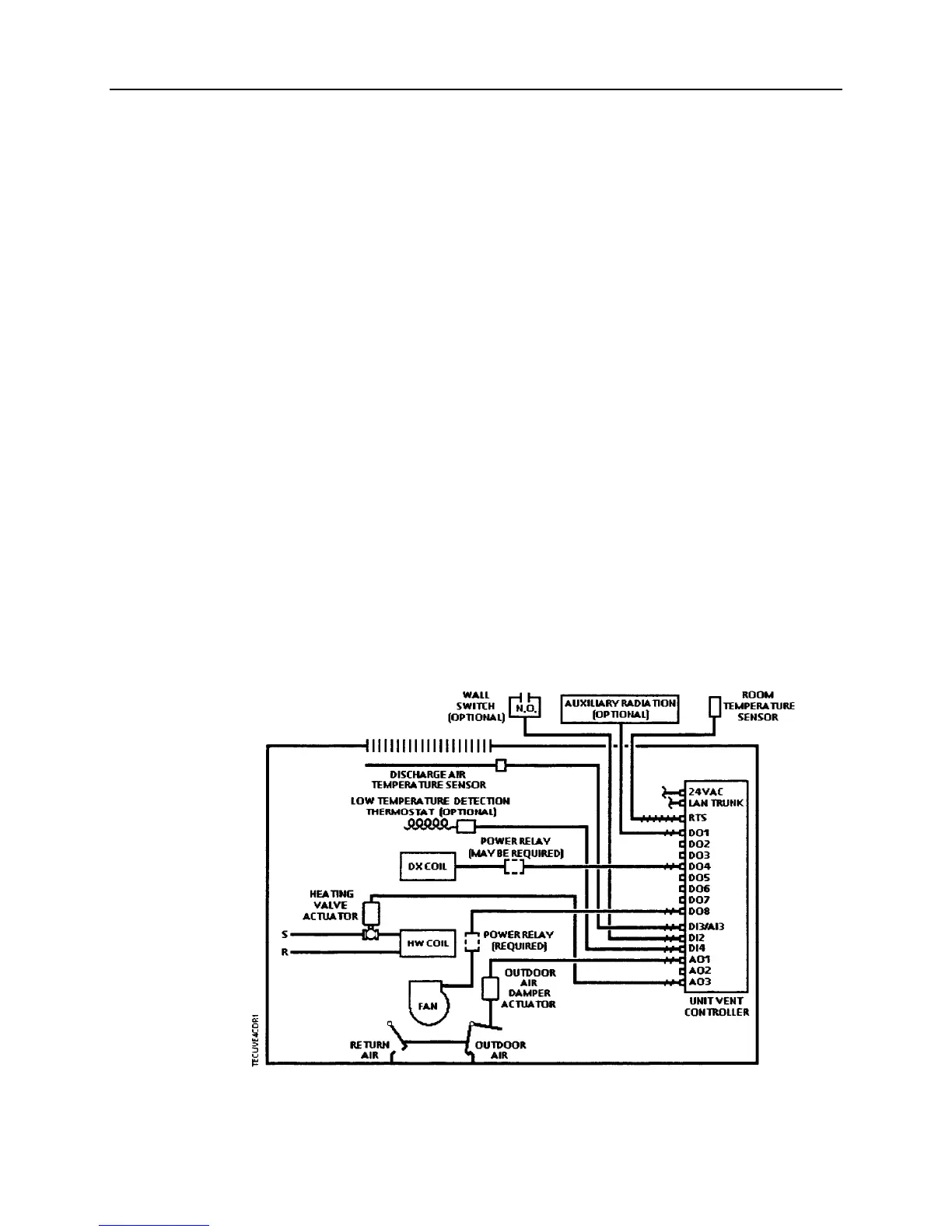 open in sequence with the heating actuator or the DX. The unit ventilator fan is also